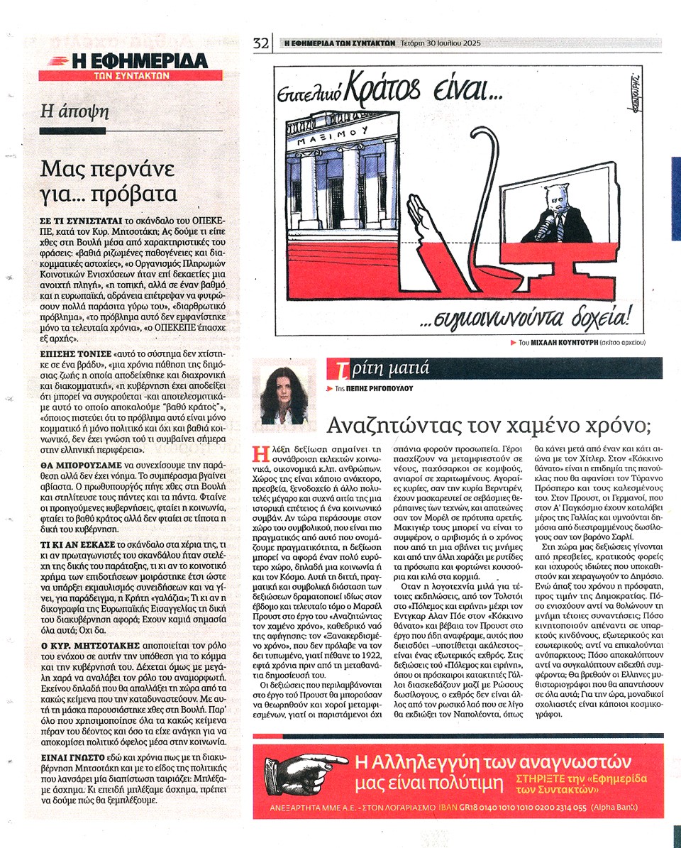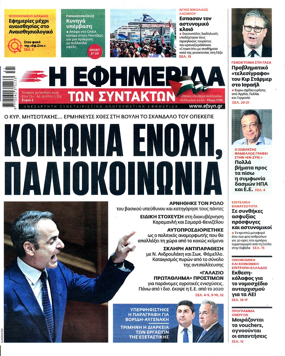 Η ΕΦΗΜΕΡΙΔΑ ΤΩΝ ΣΥΝΤΑΚΤΩΝ - 30 Ιουλίου 2025