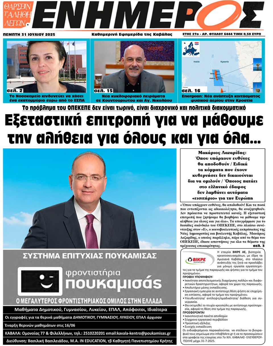 ΕΝΗΜΕΡΟΣ - 31 Ιουλίου 2025