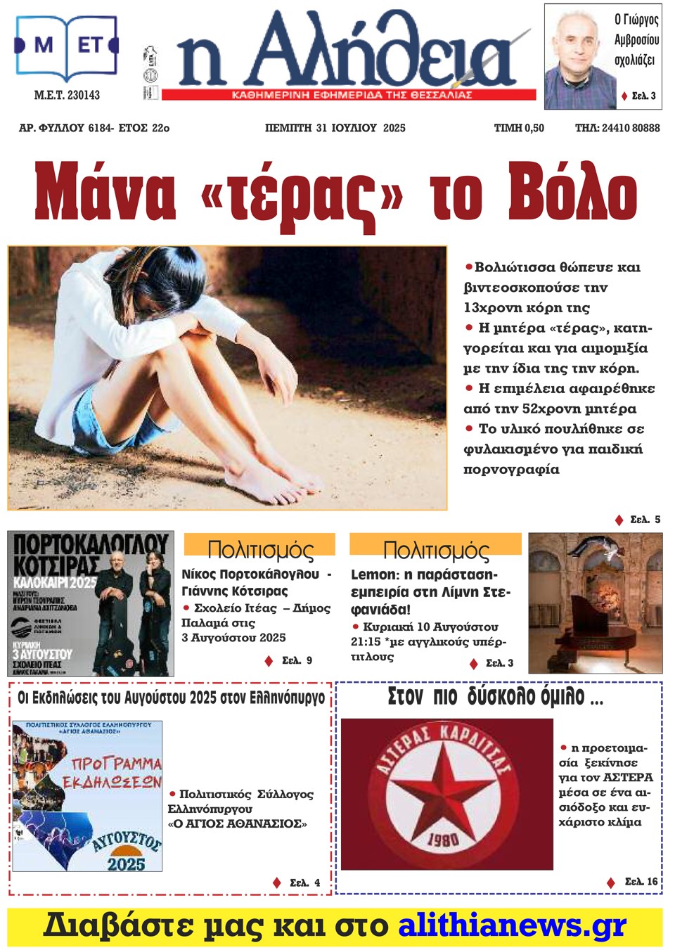 Η ΑΛΗΘΕΙΑ - 31 Ιουλίου 2025