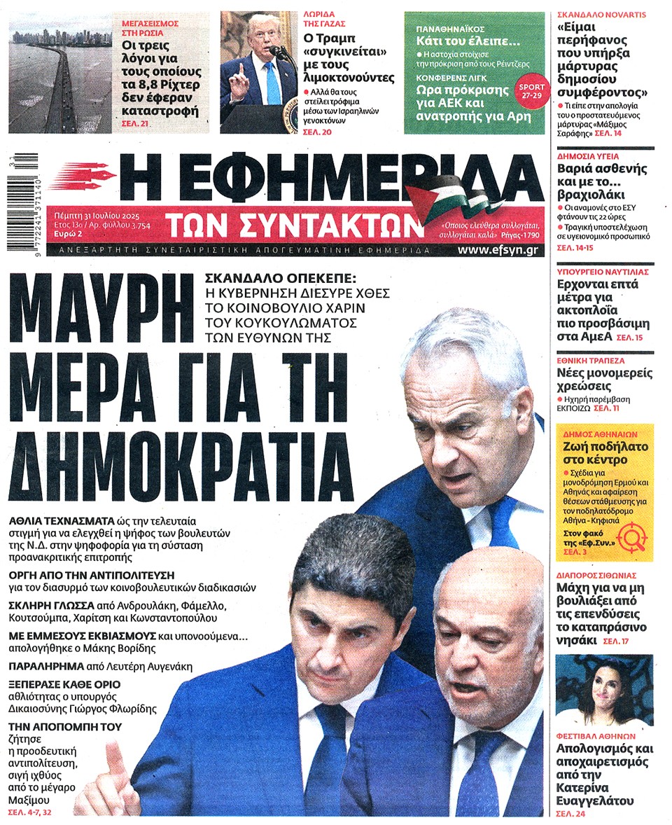Η ΕΦΗΜΕΡΙΔΑ ΤΩΝ ΣΥΝΤΑΚΤΩΝ - 31 Ιουλίου 2025