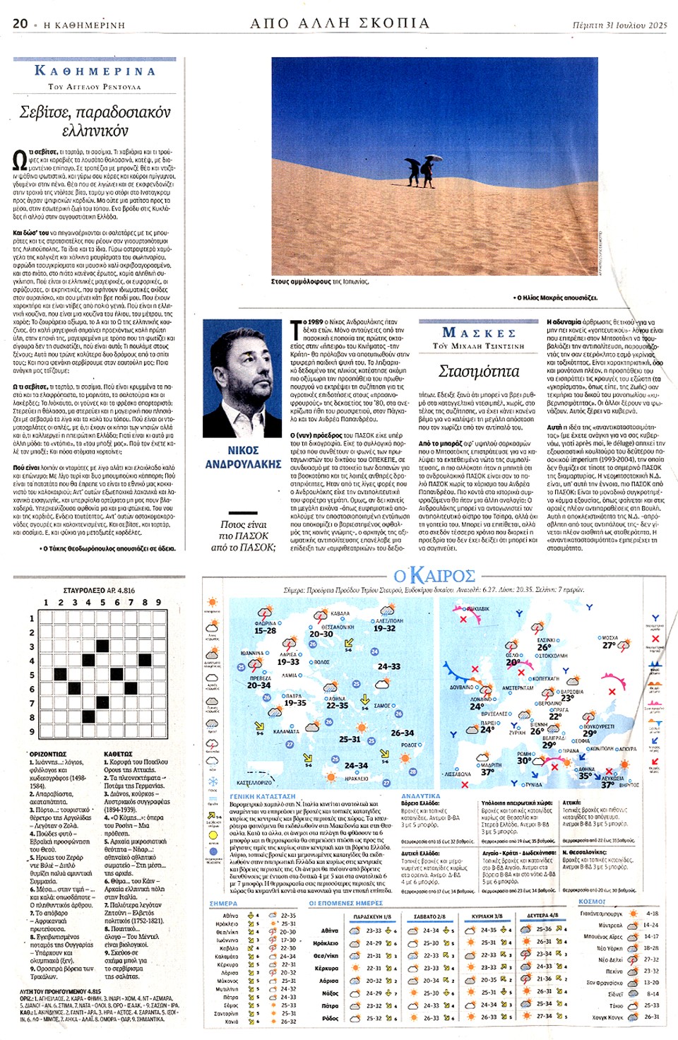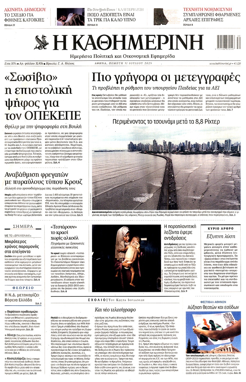 ΚΑΘΗΜΕΡΙΝΗ - 31 Ιουλίου 2025
