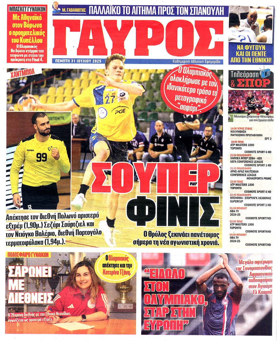 ΠΡΩΤΑΘΛΗΤΗΣ - 31 Ιουλίου 2025