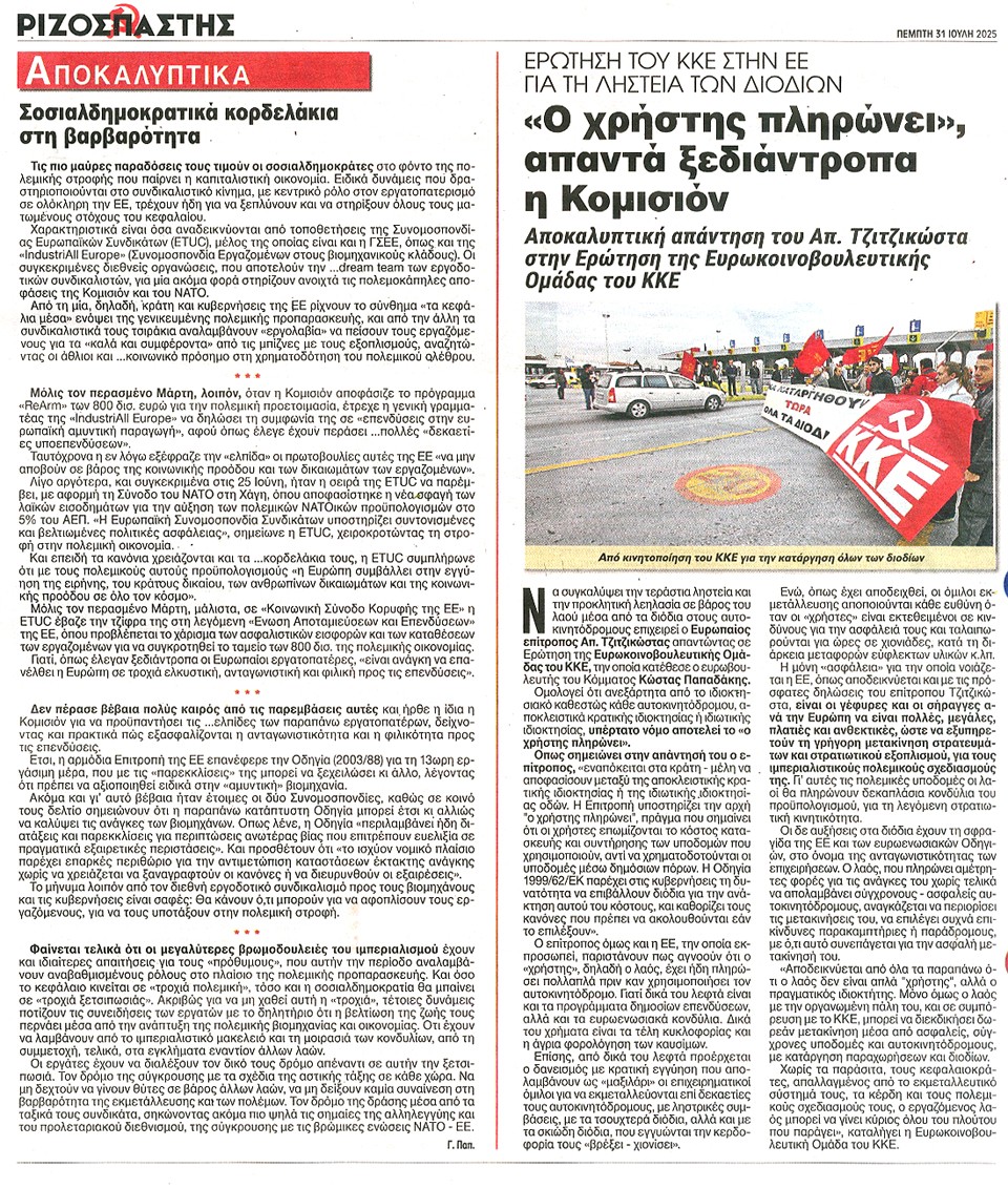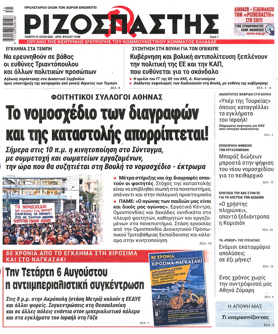 ΡΙΖΟΣΠΑΣΤΗΣ - 31 Ιουλίου 2025