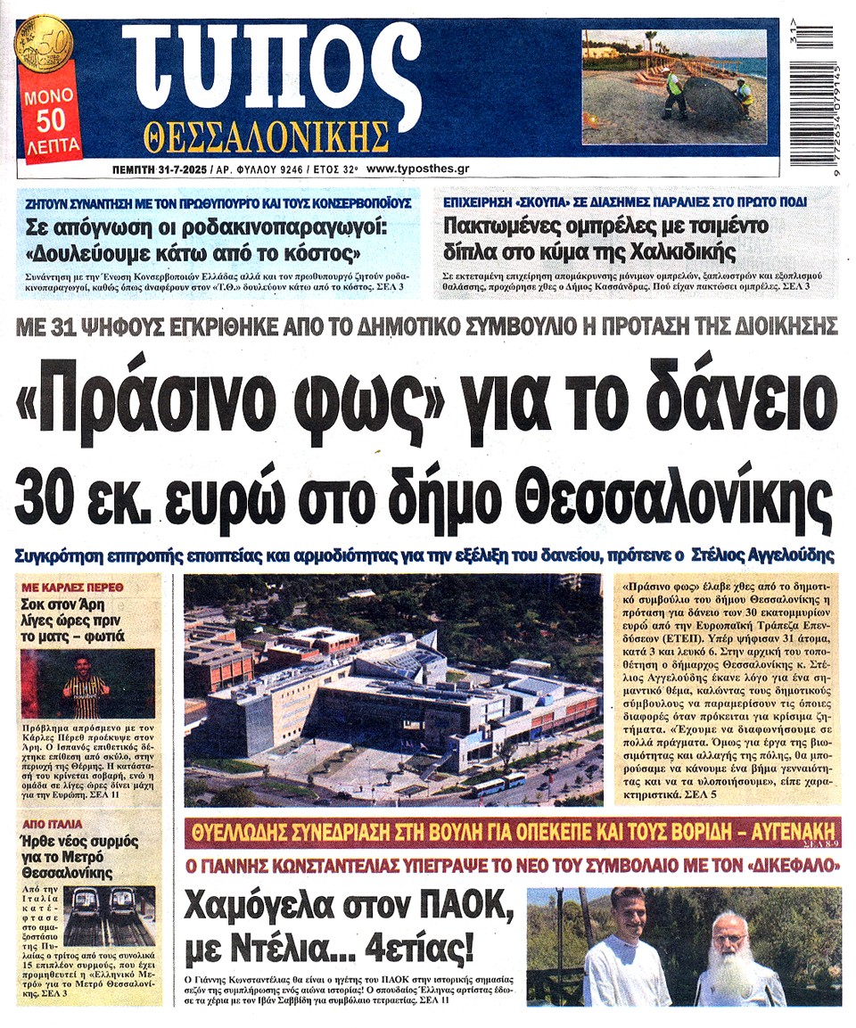 ΤΥΠΟΣ ΘΕΣΣΑΛΟΝΙΚΗΣ - 31 Ιουλίου 2025