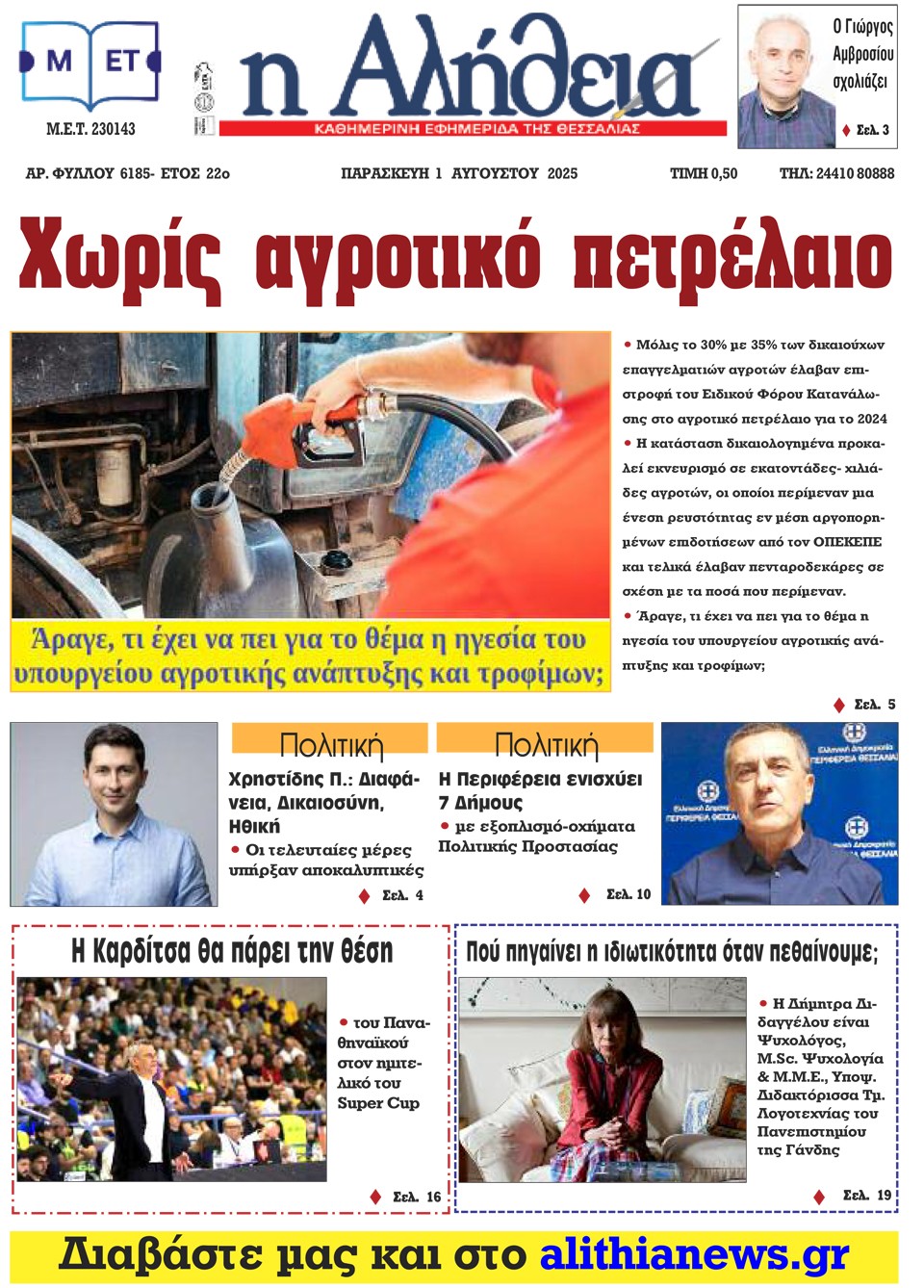 Η ΑΛΗΘΕΙΑ - 01 Αυγούστου 2025