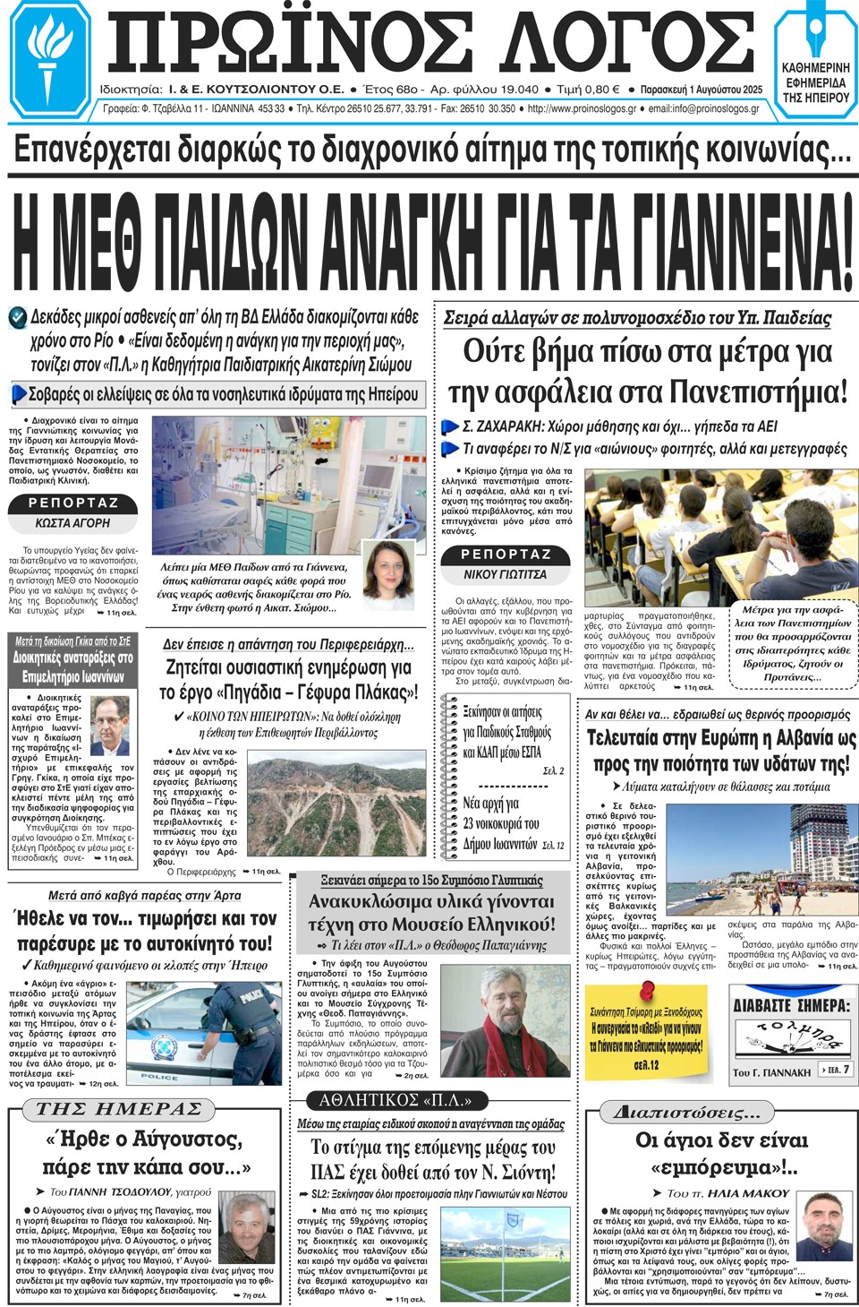 ΠΡΩΙΝΟΣ ΛΟΓΟΣ - 01 Αυγούστου 2025