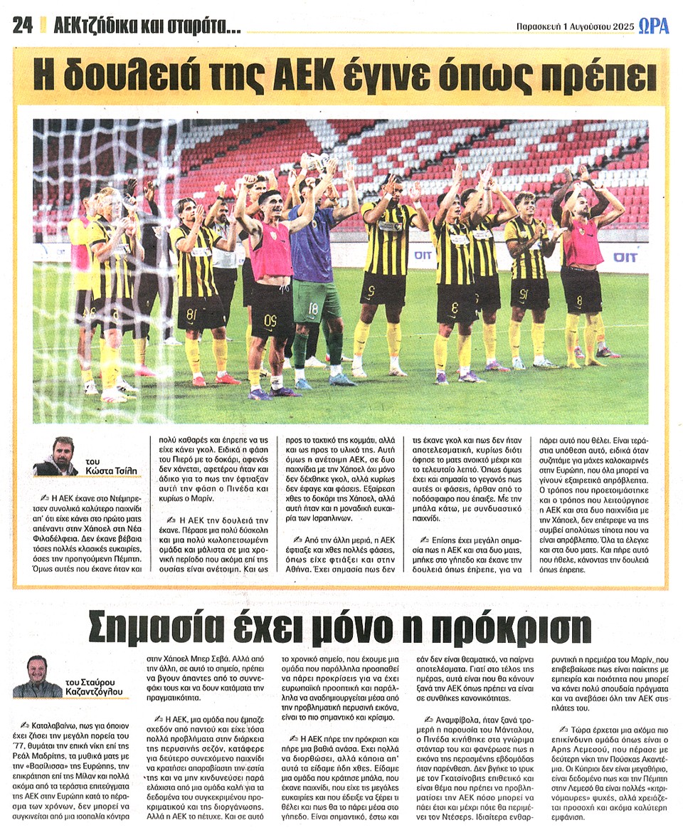ΑΘΛΗΤΙΚΗ ΩΡΑ ΤΩΝ ΣΠΟΡ - 01 Αυγούστου 2025
