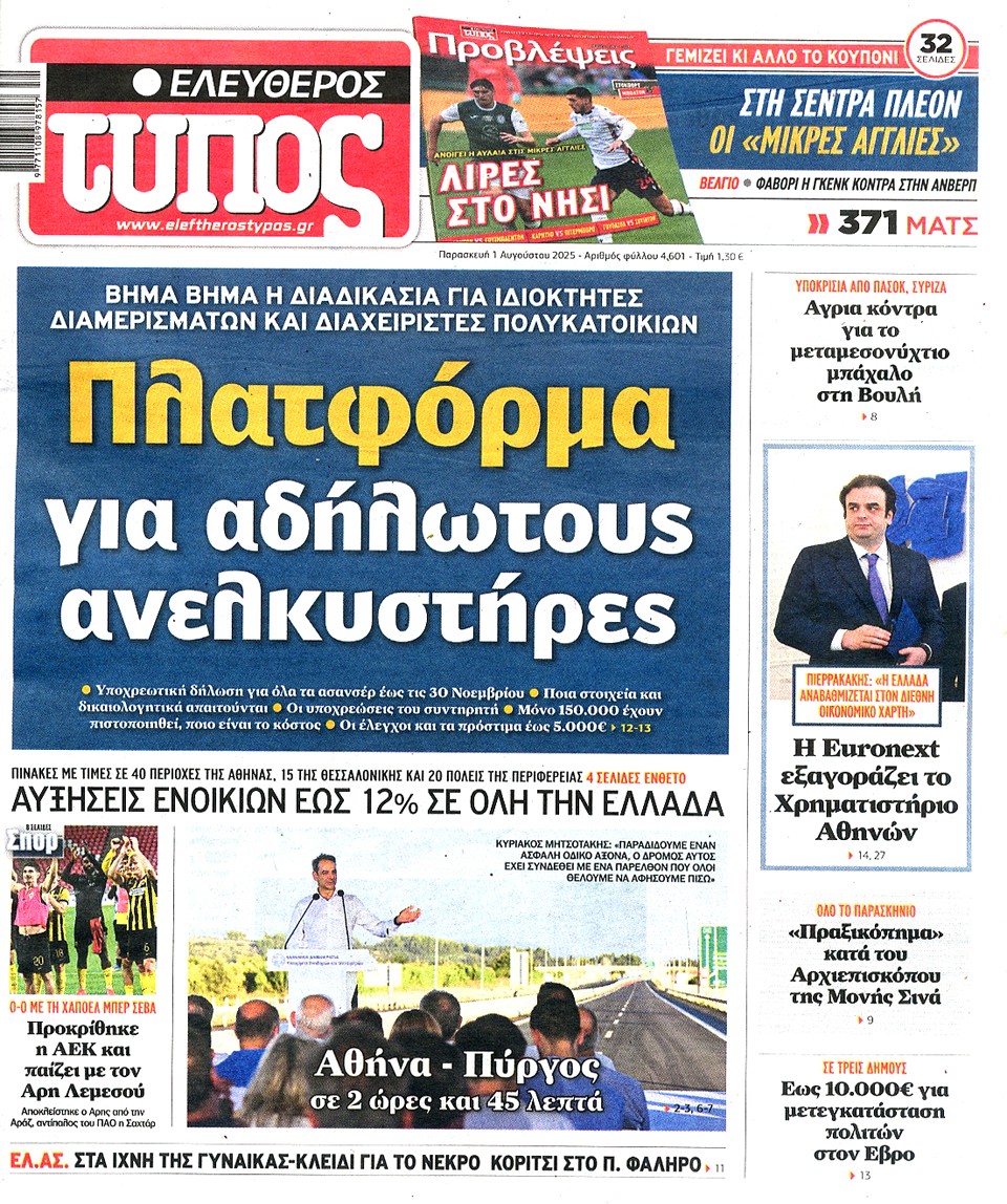 ΕΛΕΥΘΕΡΟΣ ΤΥΠΟΣ - 01 Αυγούστου 2025