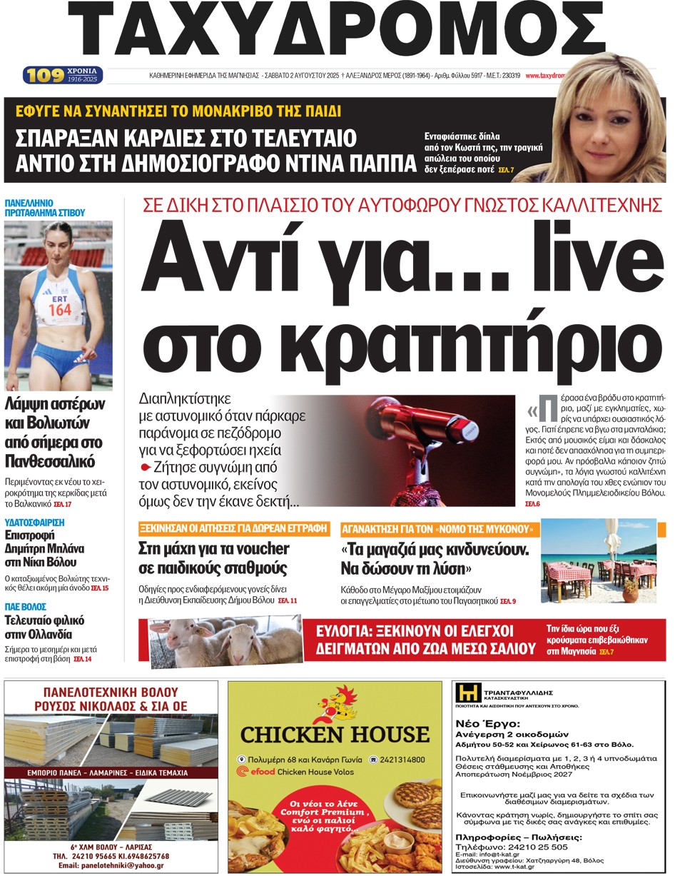 ΤΑΧΥΔΡΟΜΟΣ - 02 Αυγούστου 2025
