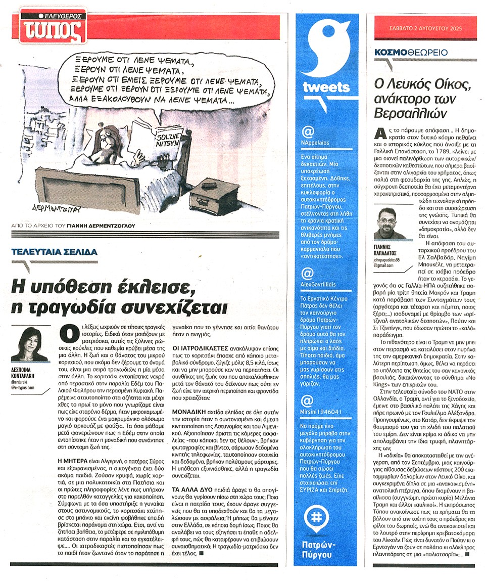 ΕΛΕΥΘΕΡΟΣ ΤΥΠΟΣ - 02 Αυγούστου 2025