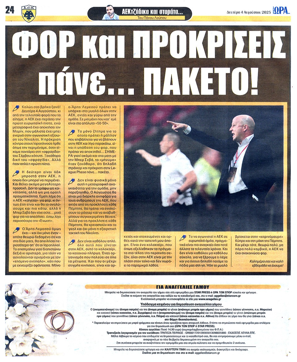 ΑΘΛΗΤΙΚΗ ΩΡΑ ΤΩΝ ΣΠΟΡ - 04 Αυγούστου 2025