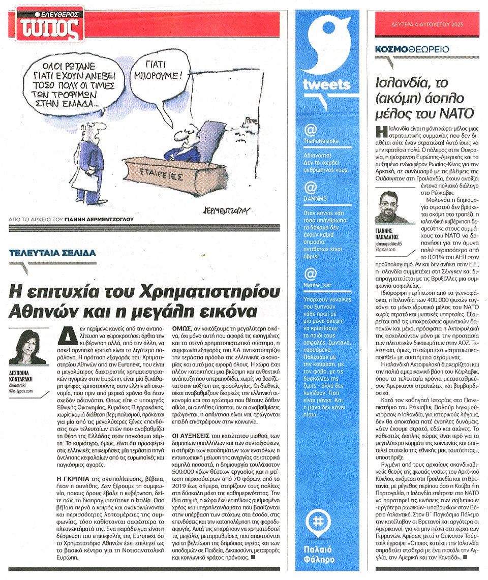 ΕΛΕΥΘΕΡΟΣ ΤΥΠΟΣ - 04 Αυγούστου 2025