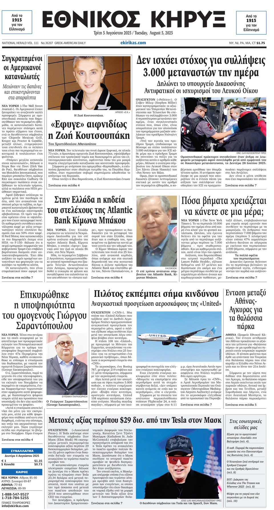 ΕΘΝΙΚΟΣ ΚΗΡΥΞ - 05 Αυγούστου 2025