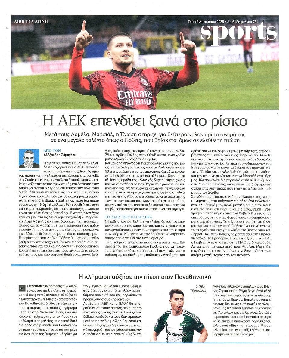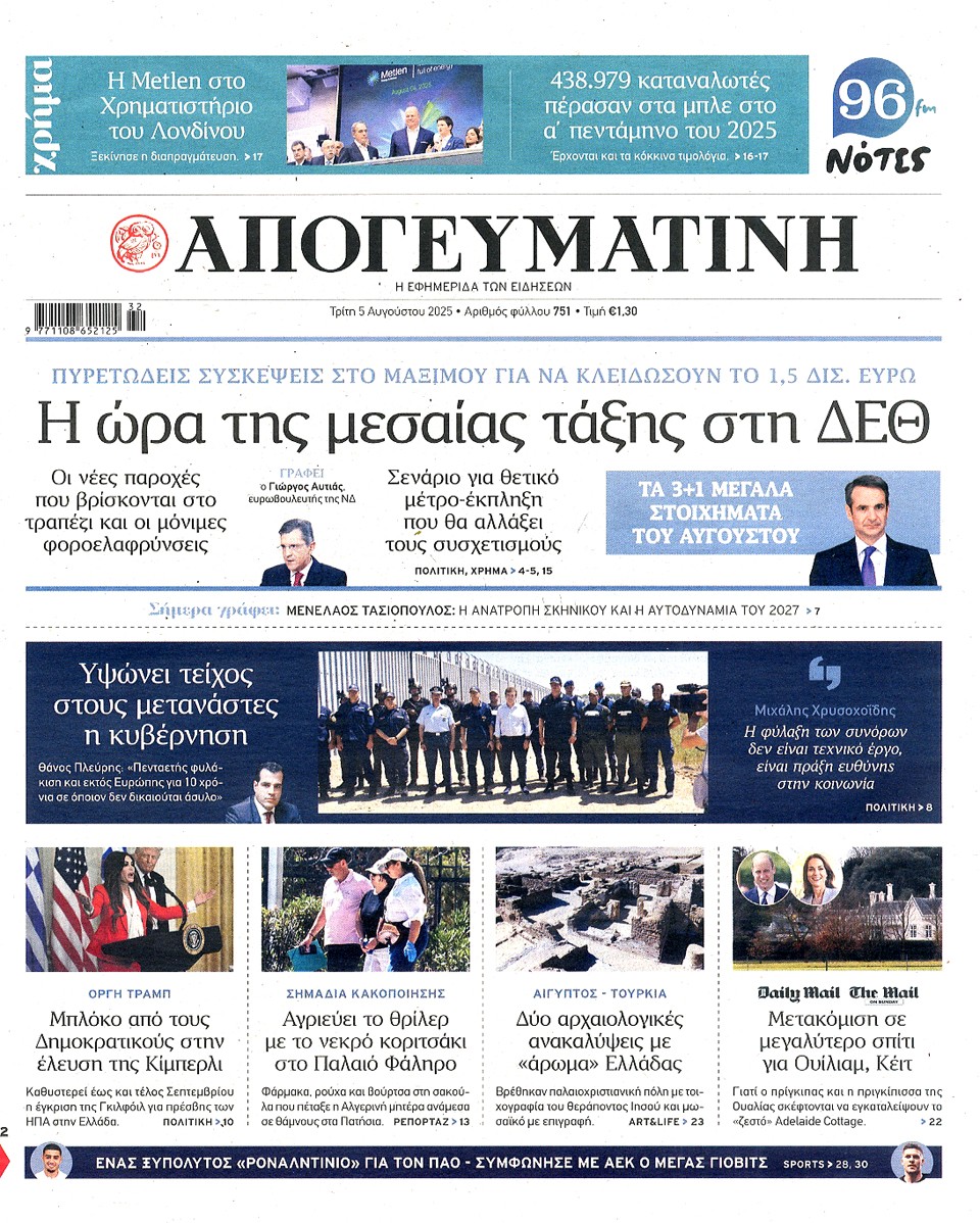 ΑΠΟΓΕΥΜΑΤΙΝΗ - 05 Αυγούστου 2025