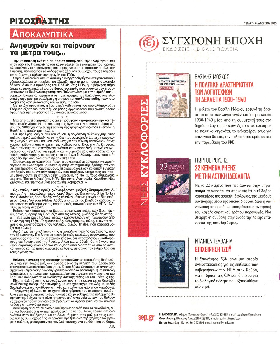 ΡΙΖΟΣΠΑΣΤΗΣ - 06 Αυγούστου 2025