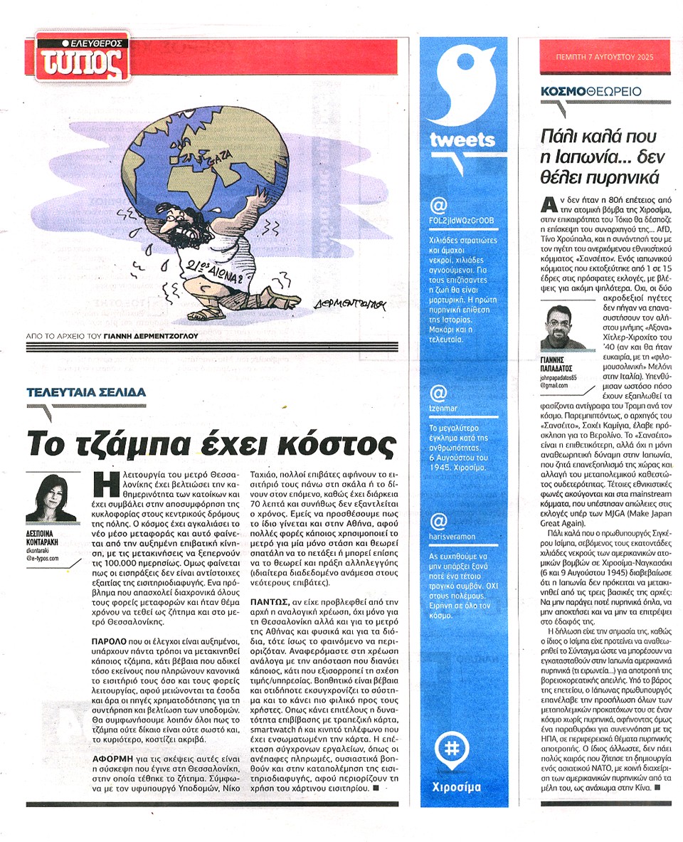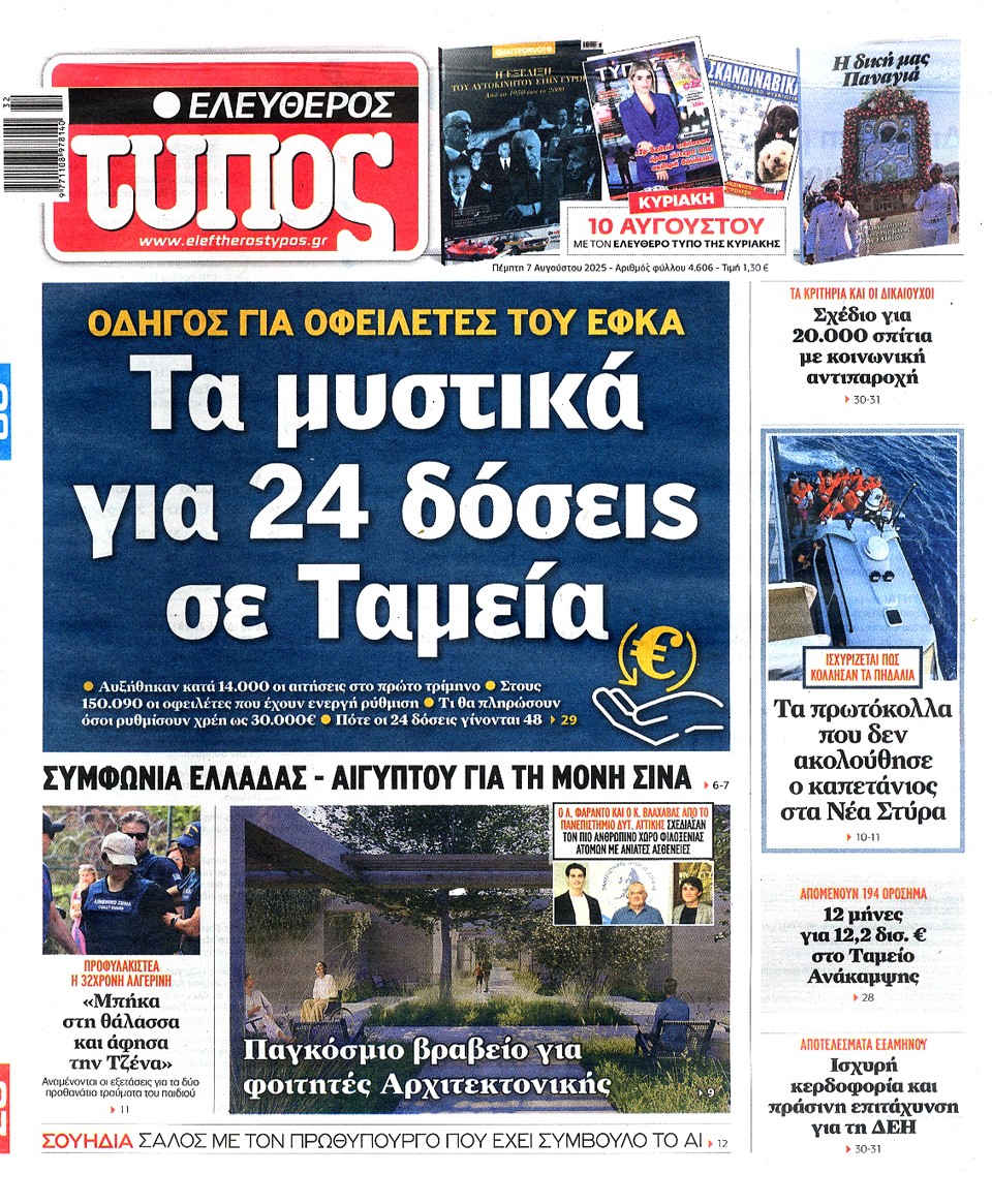 ΕΛΕΥΘΕΡΟΣ ΤΥΠΟΣ - 07 Αυγούστου 2025