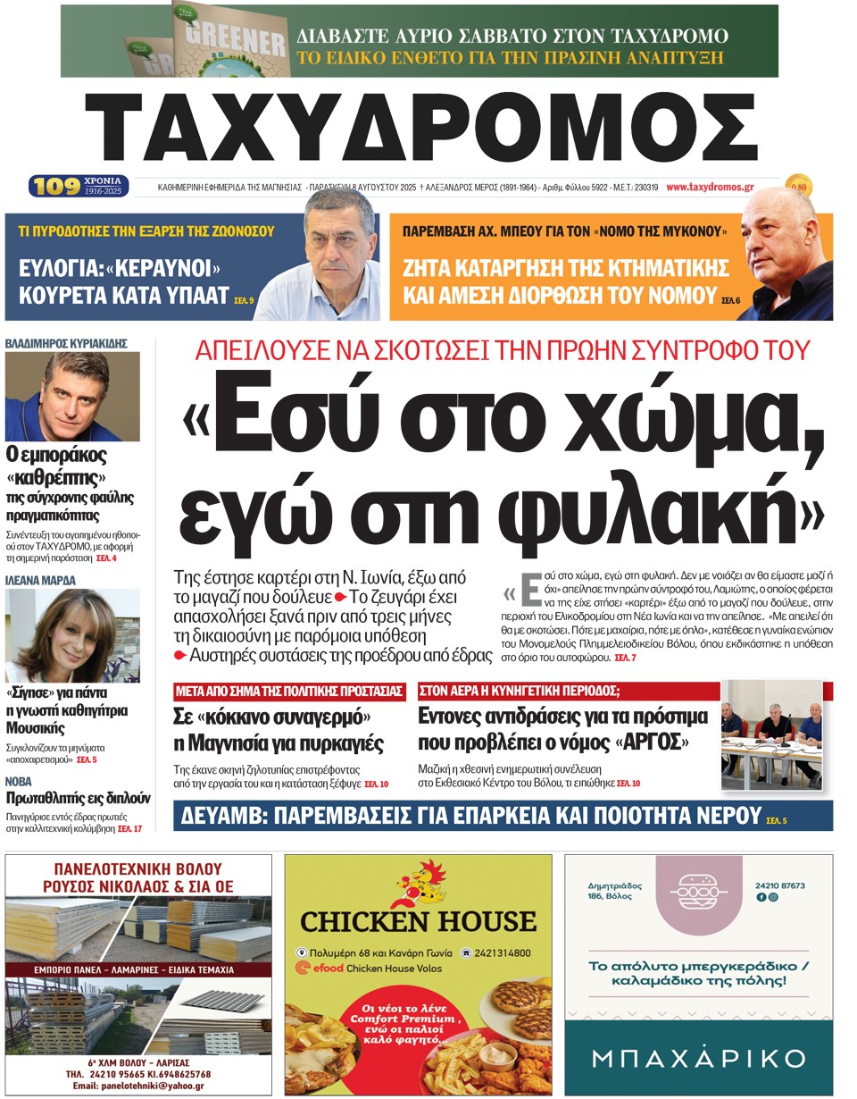 ΤΑΧΥΔΡΟΜΟΣ - 08 Αυγούστου 2025