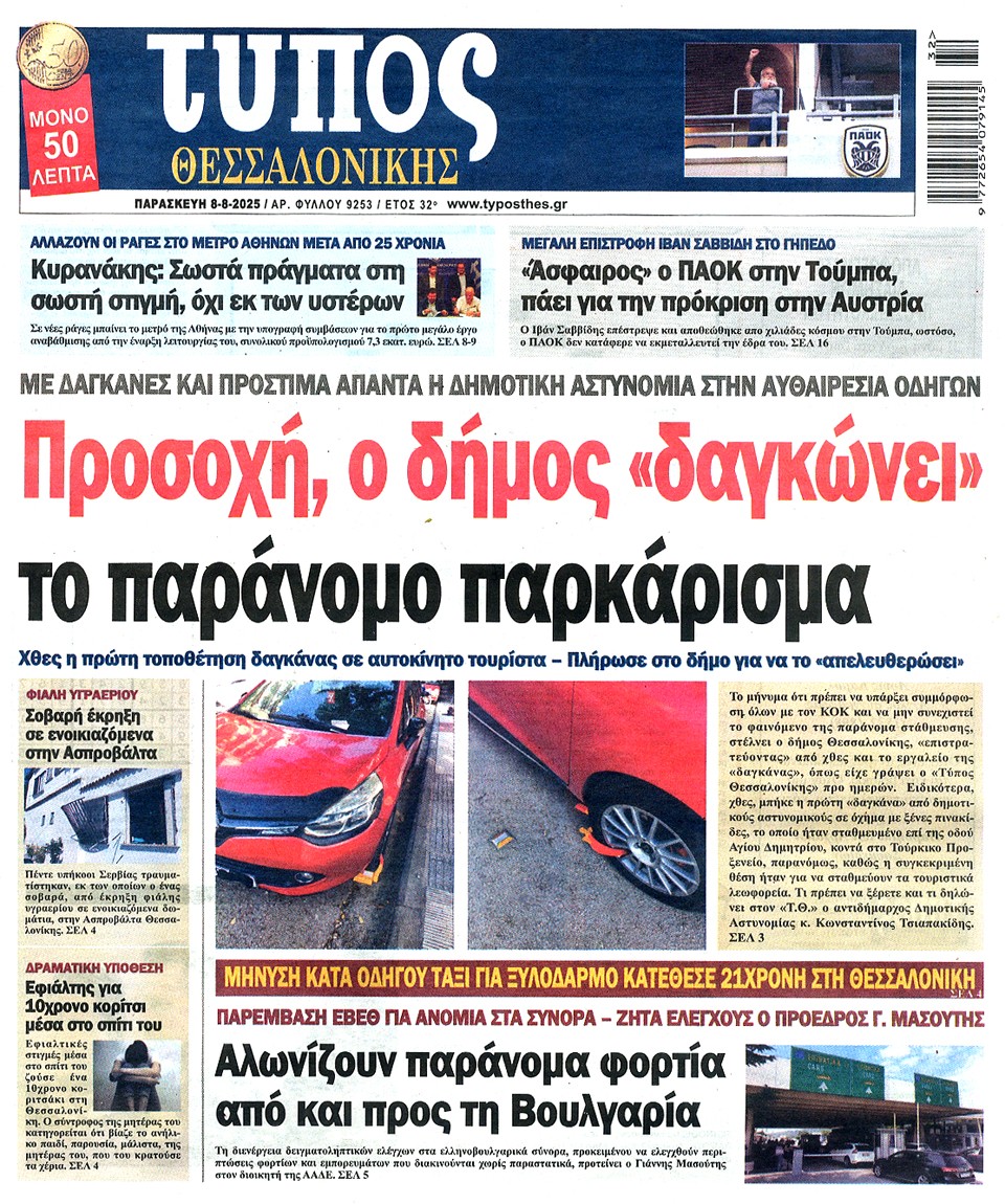 ΤΥΠΟΣ ΘΕΣΣΑΛΟΝΙΚΗΣ - 08 Αυγούστου 2025
