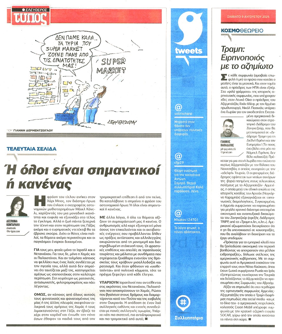 ΕΛΕΥΘΕΡΟΣ ΤΥΠΟΣ - 09 Αυγούστου 2025