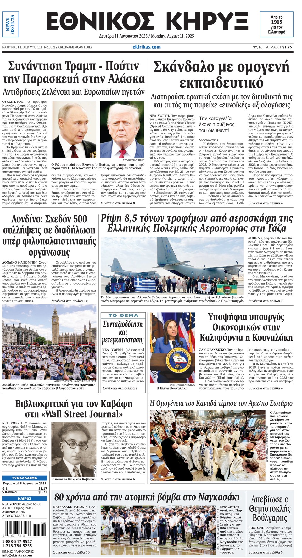 ΕΘΝΙΚΟΣ ΚΗΡΥΞ - 11 Αυγούστου 2025