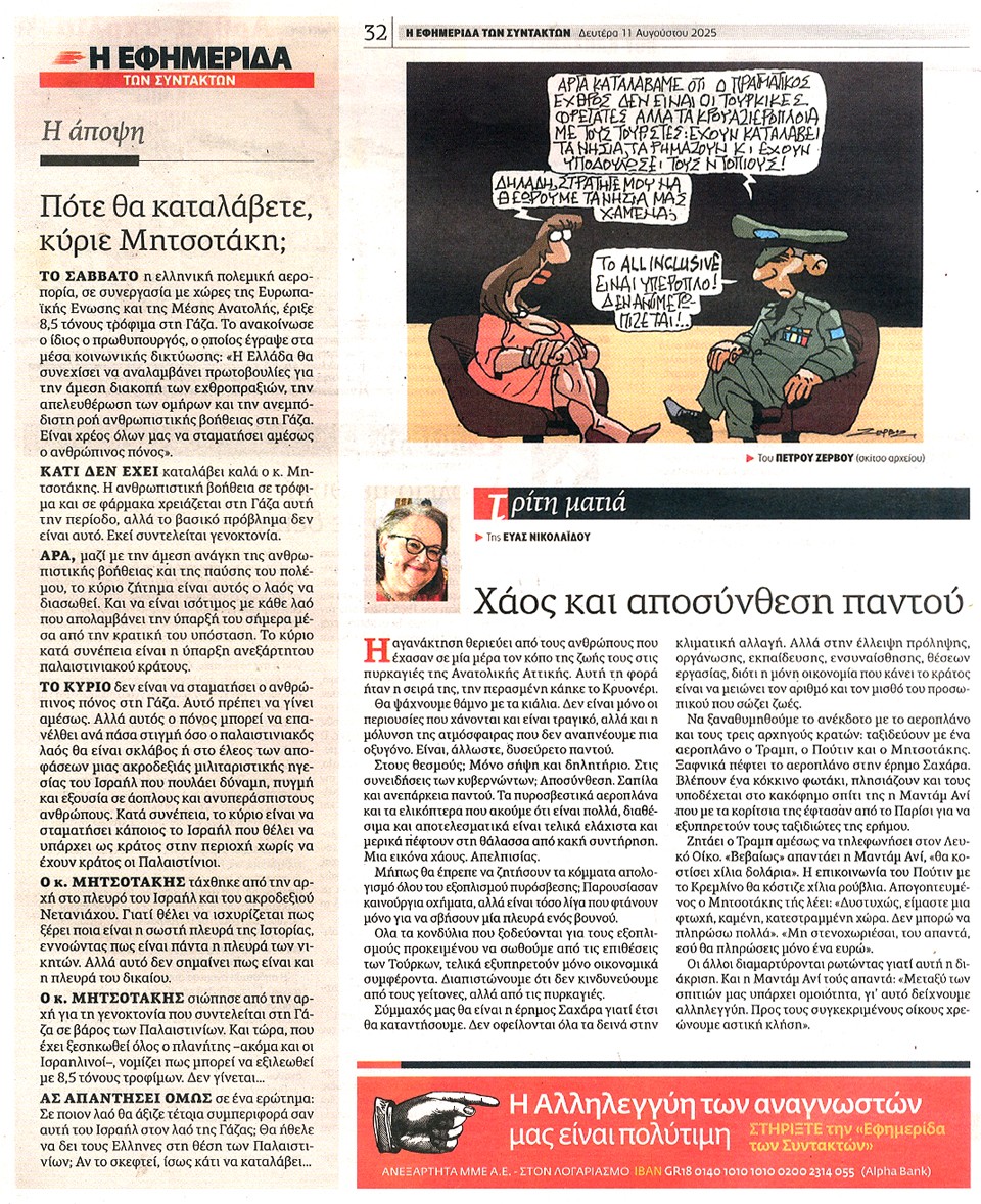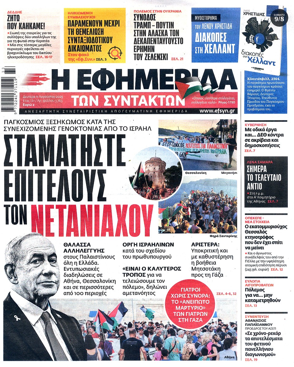 Η ΕΦΗΜΕΡΙΔΑ ΤΩΝ ΣΥΝΤΑΚΤΩΝ - 11 Αυγούστου 2025