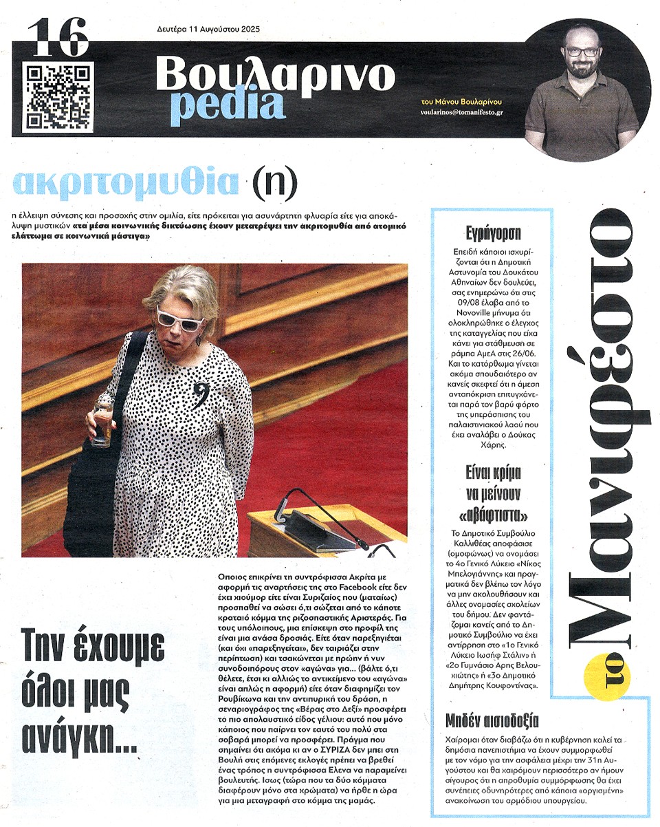 ΤΟ ΜΑΝΙΦΕΣΤΟ - 11 Αυγούστου 2025