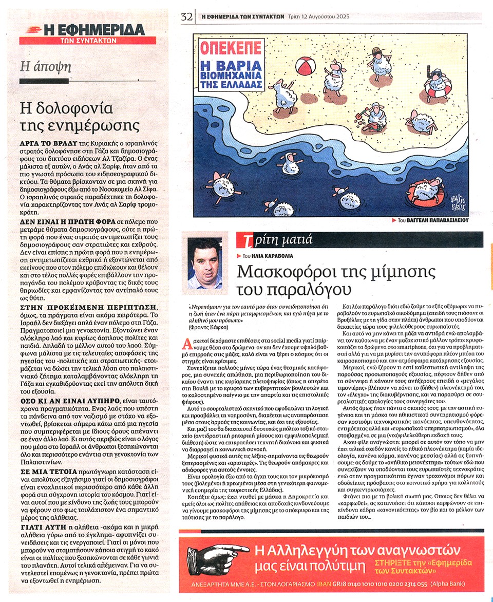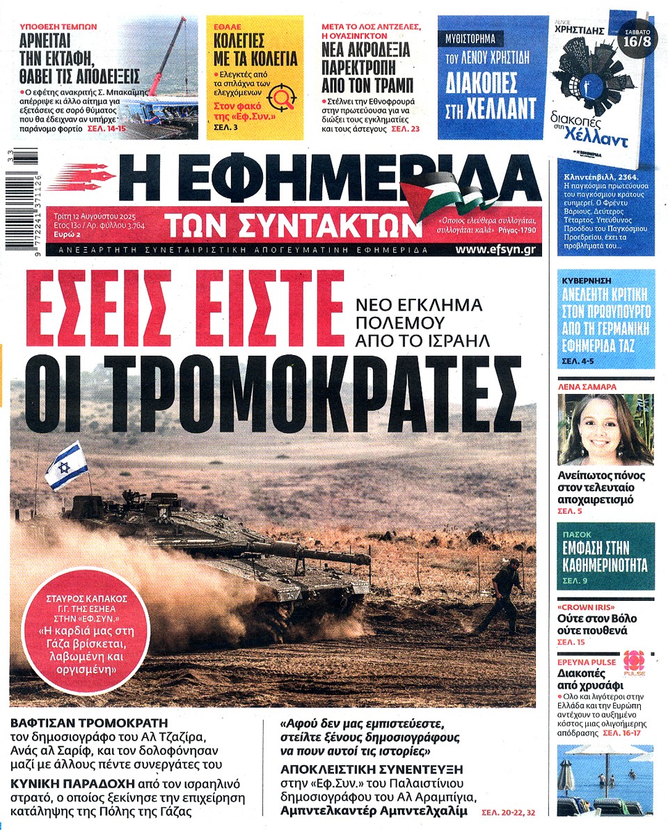 Η ΕΦΗΜΕΡΙΔΑ ΤΩΝ ΣΥΝΤΑΚΤΩΝ - 12 Αυγούστου 2025