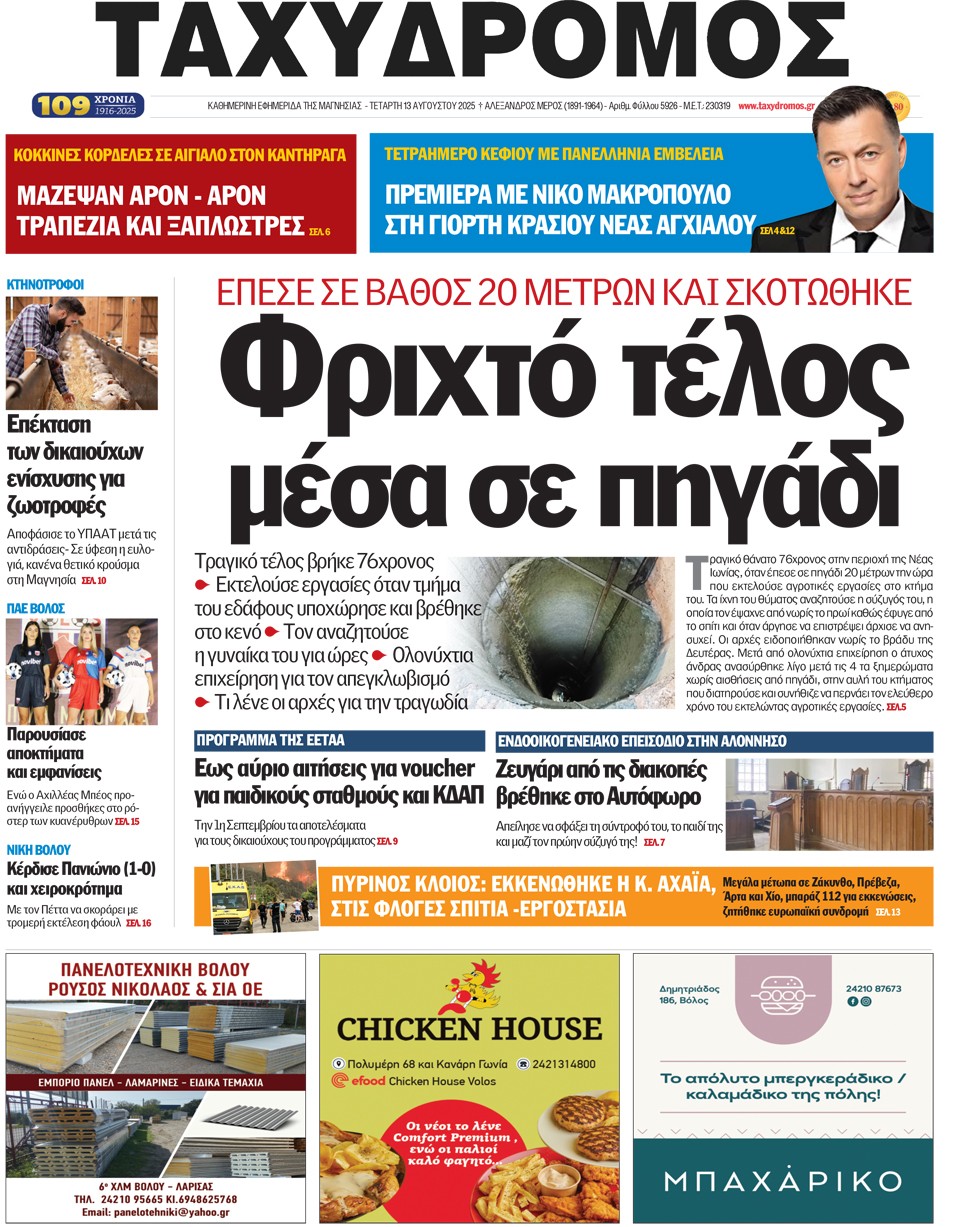ΤΑΧΥΔΡΟΜΟΣ - 13 Αυγούστου 2025