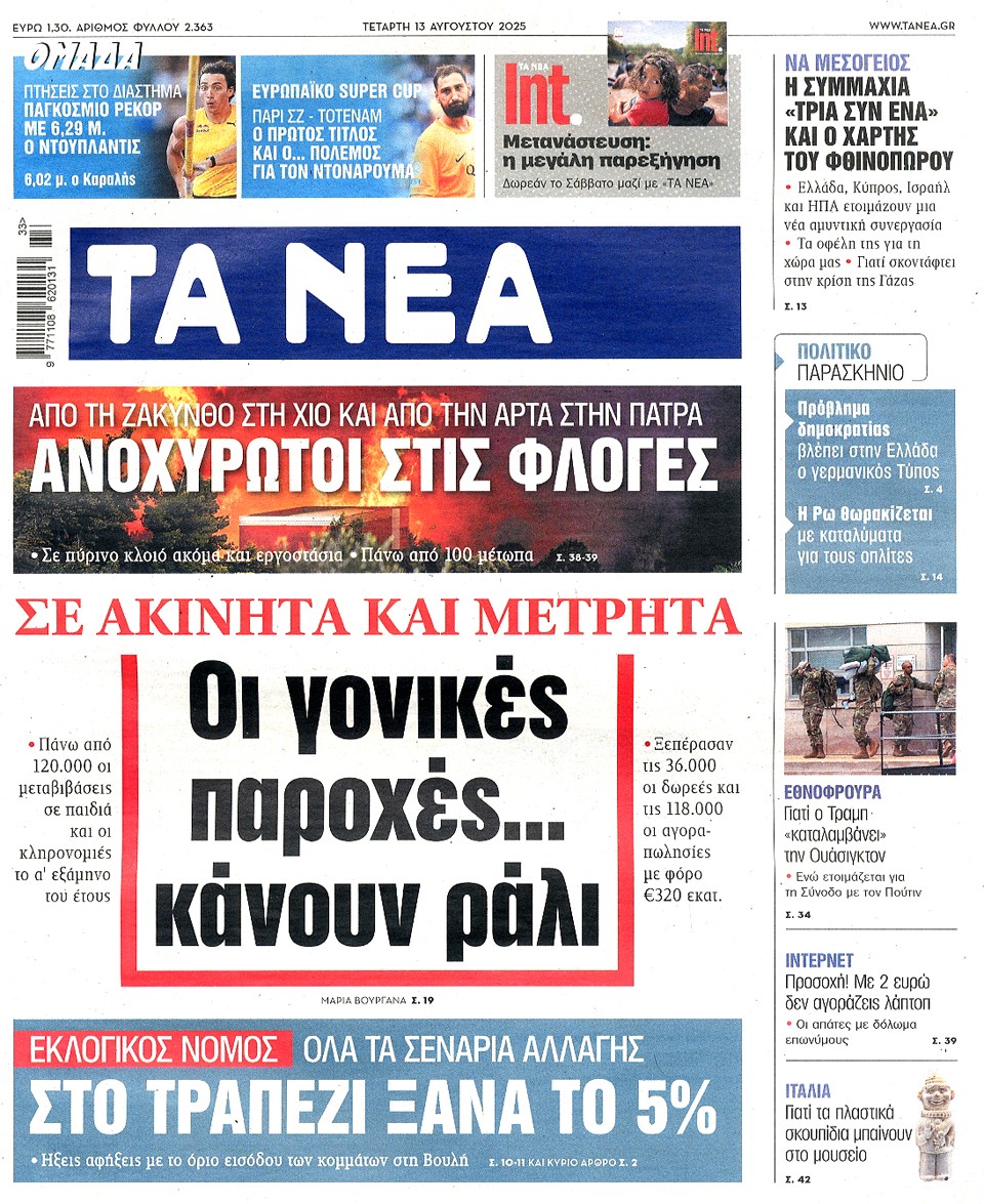 ΤΑ ΝΕΑ - 13 Αυγούστου 2025