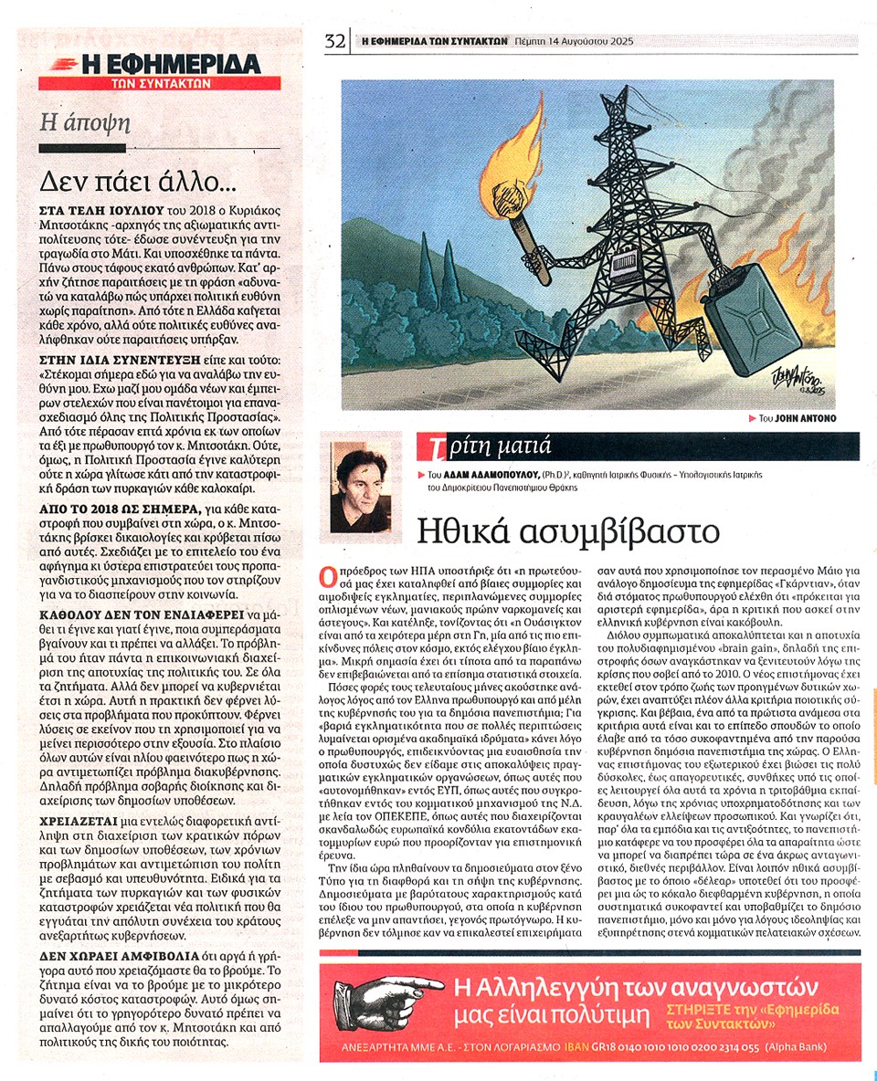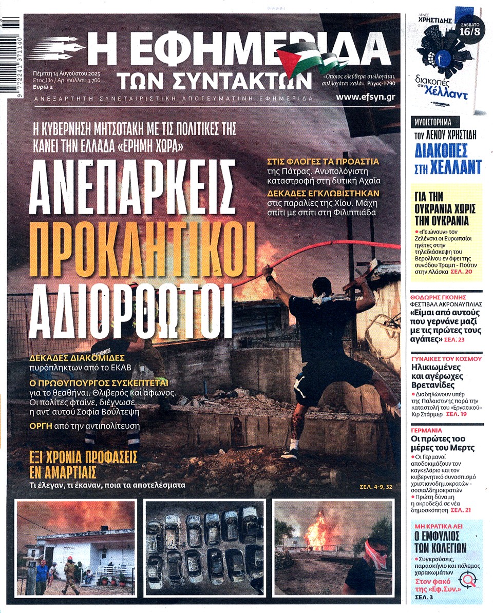 Η ΕΦΗΜΕΡΙΔΑ ΤΩΝ ΣΥΝΤΑΚΤΩΝ - 14 Αυγούστου 2025