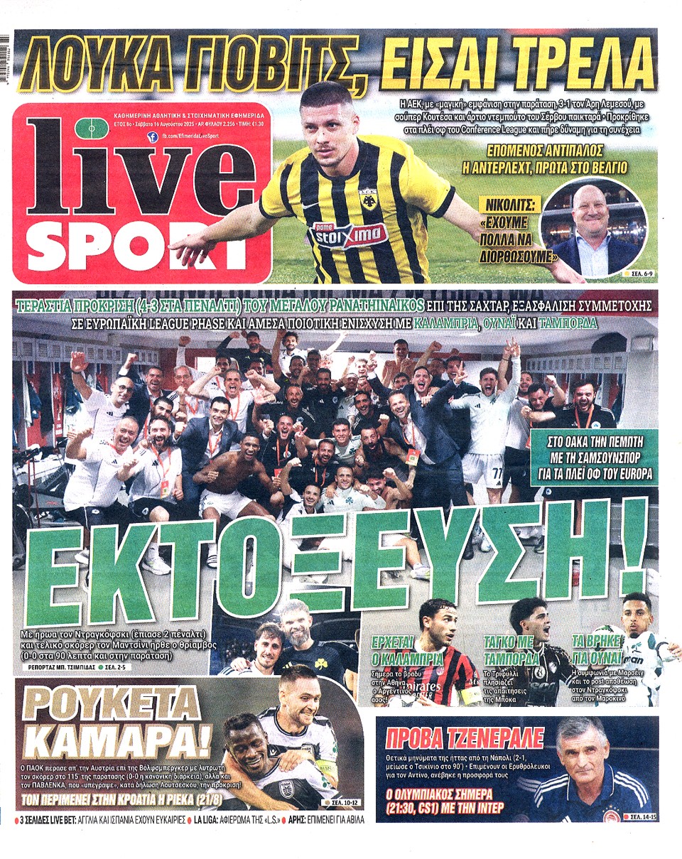 LIVE SPORT - 16 Αυγούστου 2025