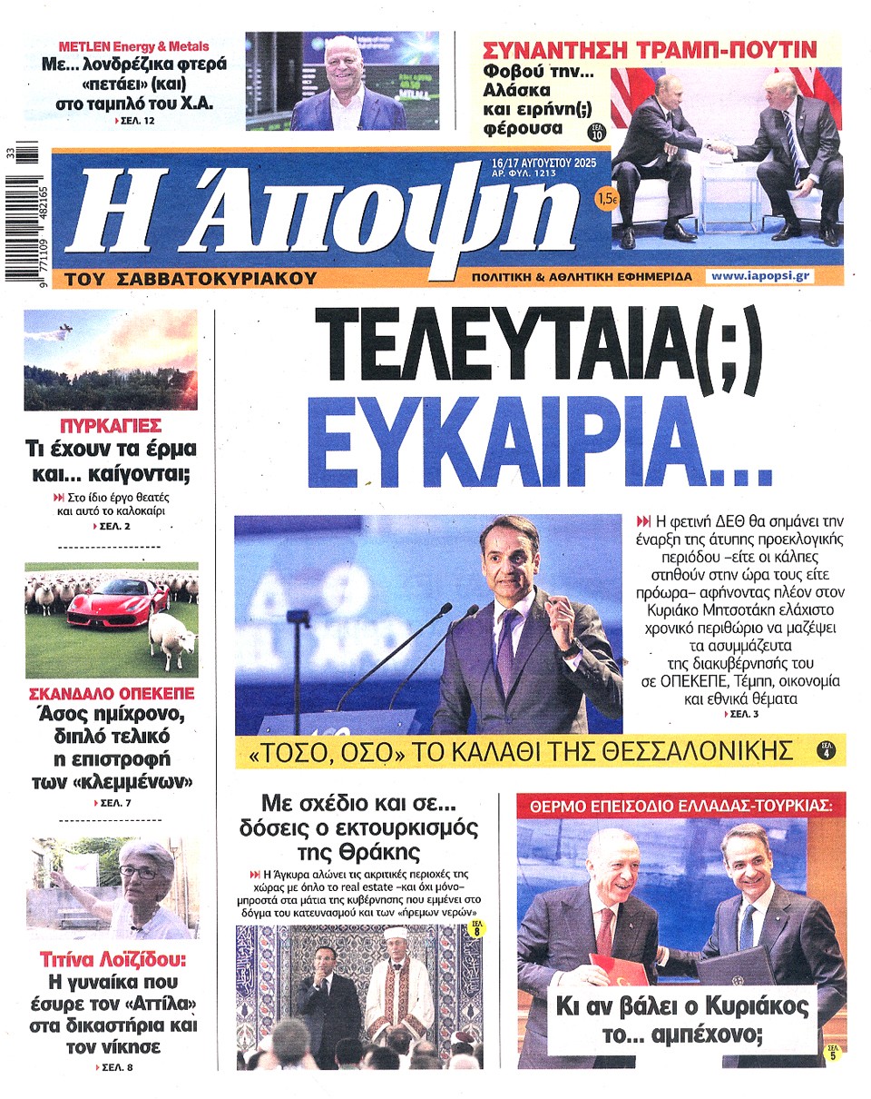 Η ΑΠΟΨΗ - 16 Αυγούστου 2025