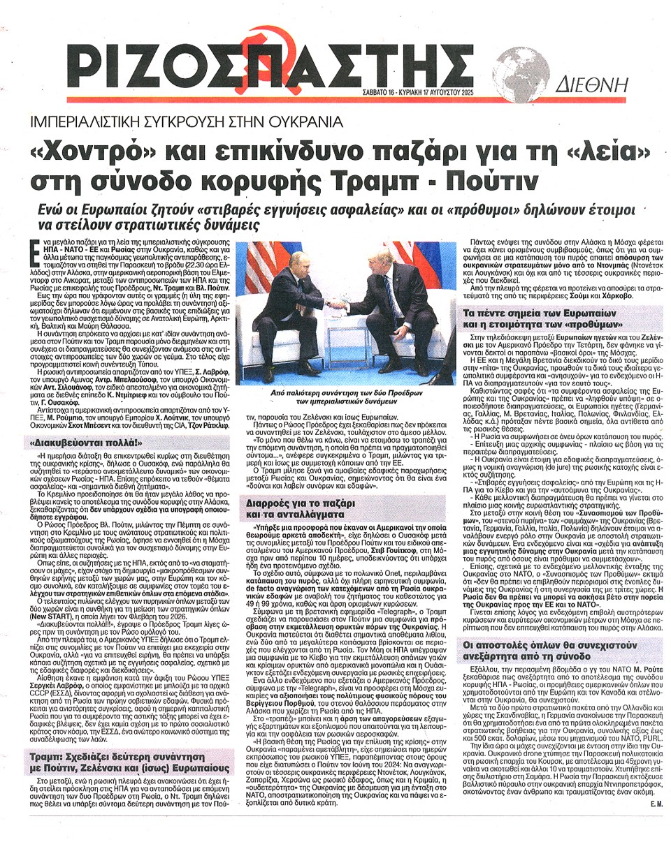 ΡΙΖΟΣΠΑΣΤΗΣ ΤΗΣ ΚΥΡΙΑΚΗΣ - 16 Αυγούστου 2025