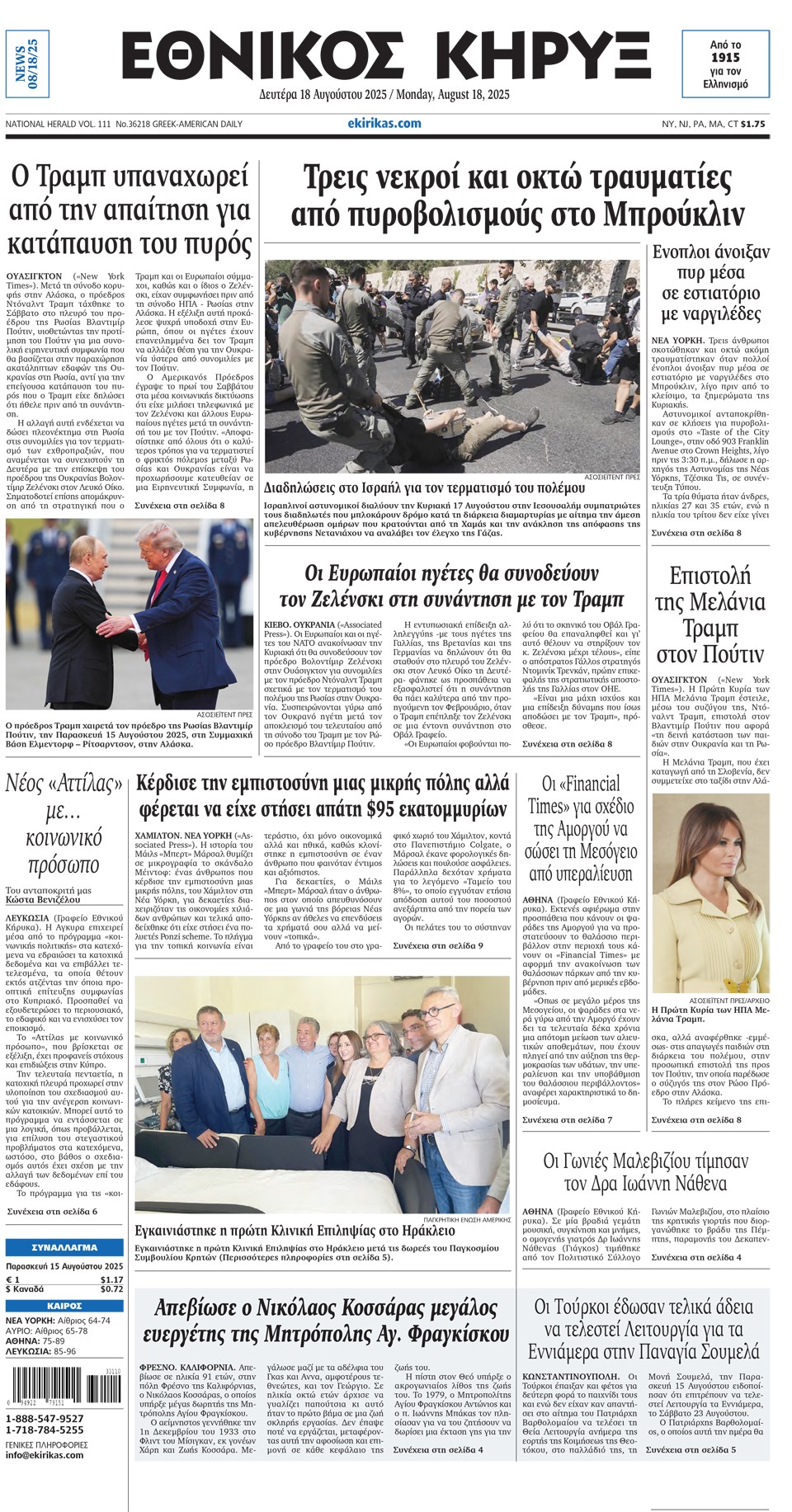 ΕΘΝΙΚΟΣ ΚΗΡΥΞ - 18 Αυγούστου 2025