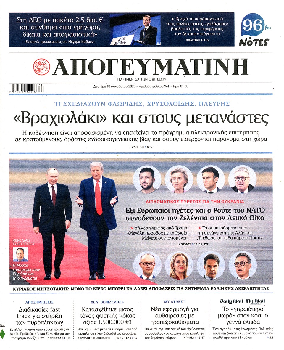 ΑΠΟΓΕΥΜΑΤΙΝΗ - 18 Αυγούστου 2025