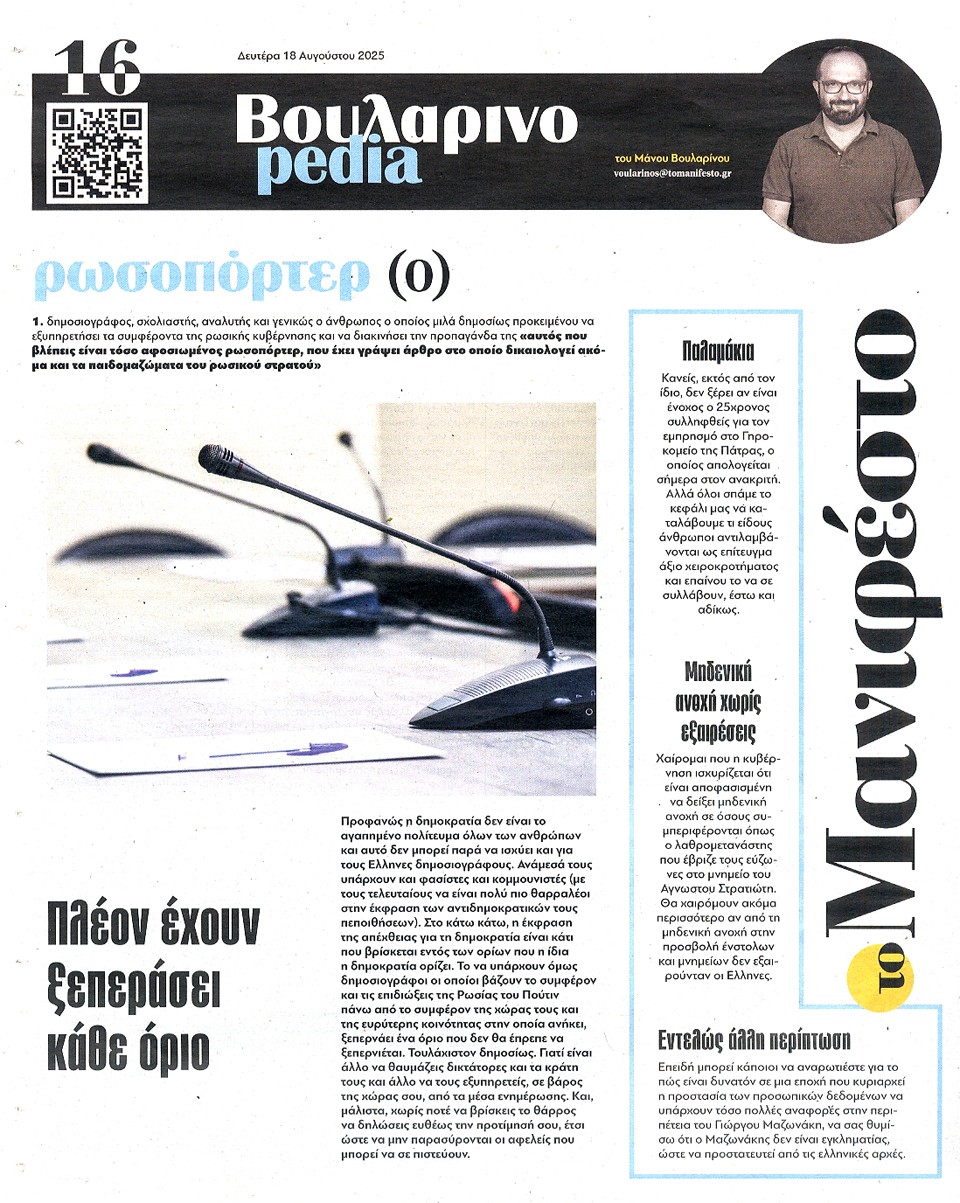ΤΟ ΜΑΝΙΦΕΣΤΟ - 18 Αυγούστου 2025