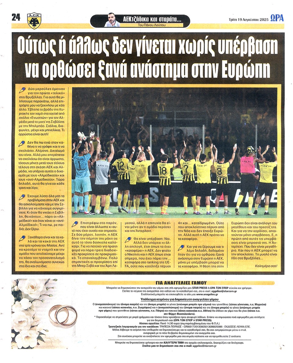 ΑΘΛΗΤΙΚΗ ΩΡΑ ΤΩΝ ΣΠΟΡ - 19 Αυγούστου 2025