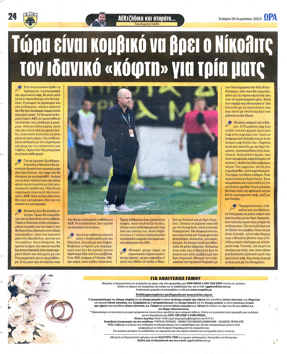 ΑΘΛΗΤΙΚΗ ΩΡΑ ΤΩΝ ΣΠΟΡ - 20 Αυγούστου 2025