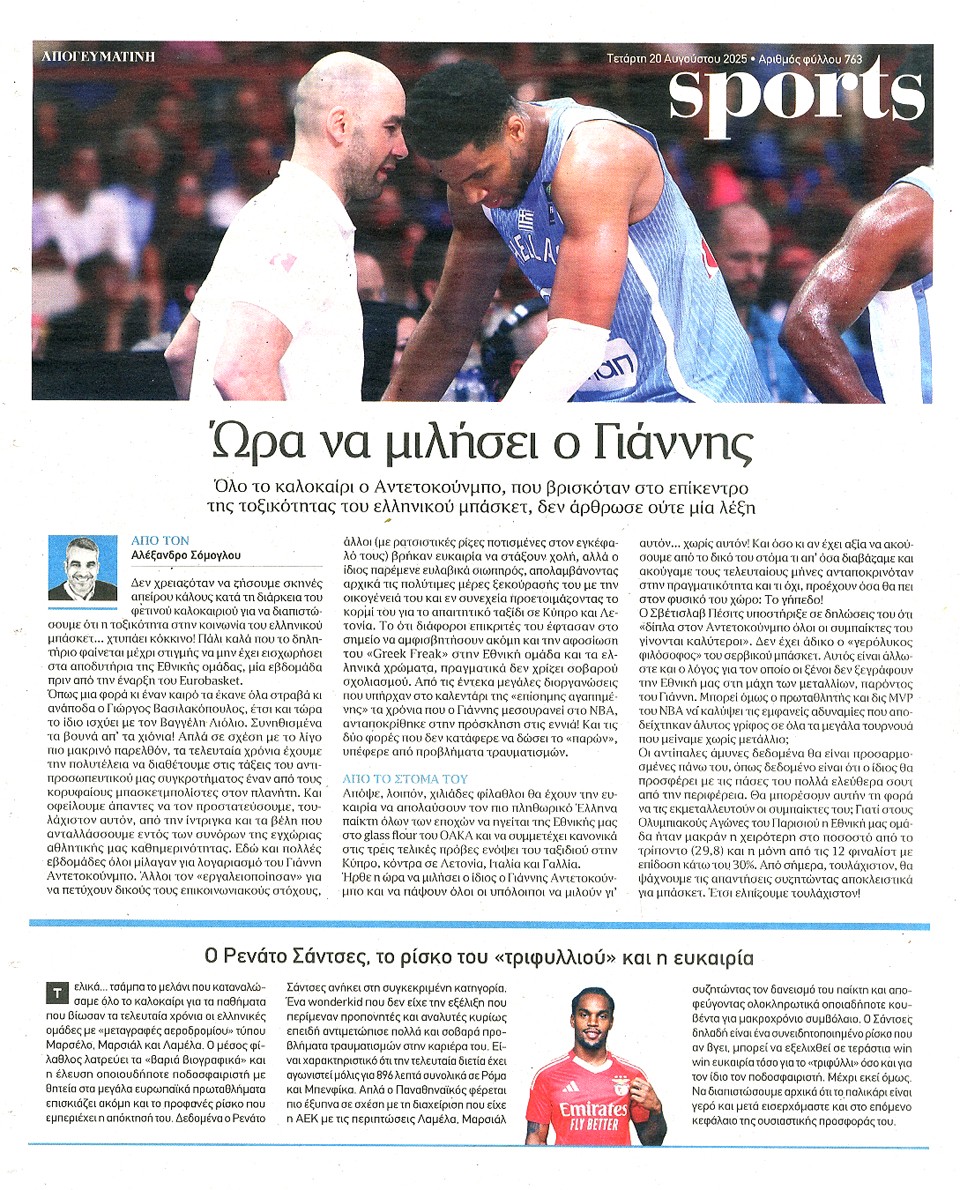 ΑΠΟΓΕΥΜΑΤΙΝΗ - 20 Αυγούστου 2025