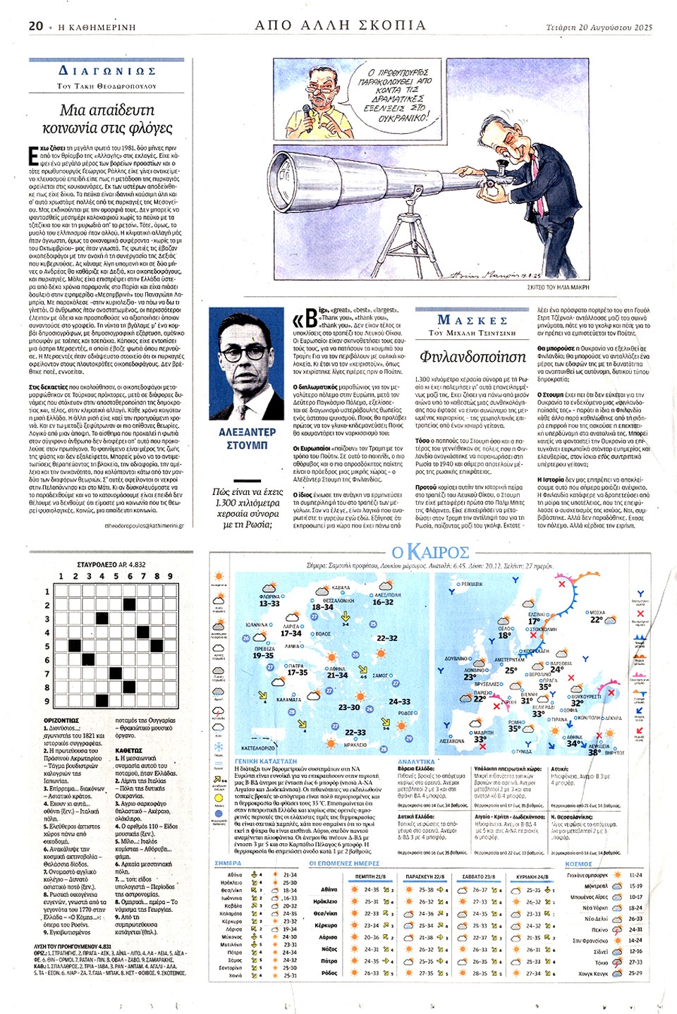 ΚΑΘΗΜΕΡΙΝΗ - 20 Αυγούστου 2025