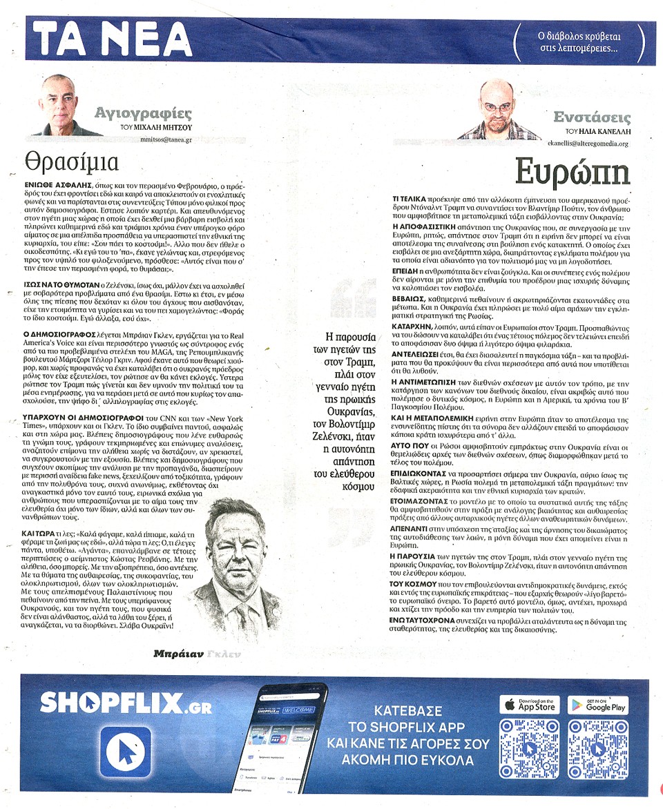 ΤΑ ΝΕΑ - 20 Αυγούστου 2025