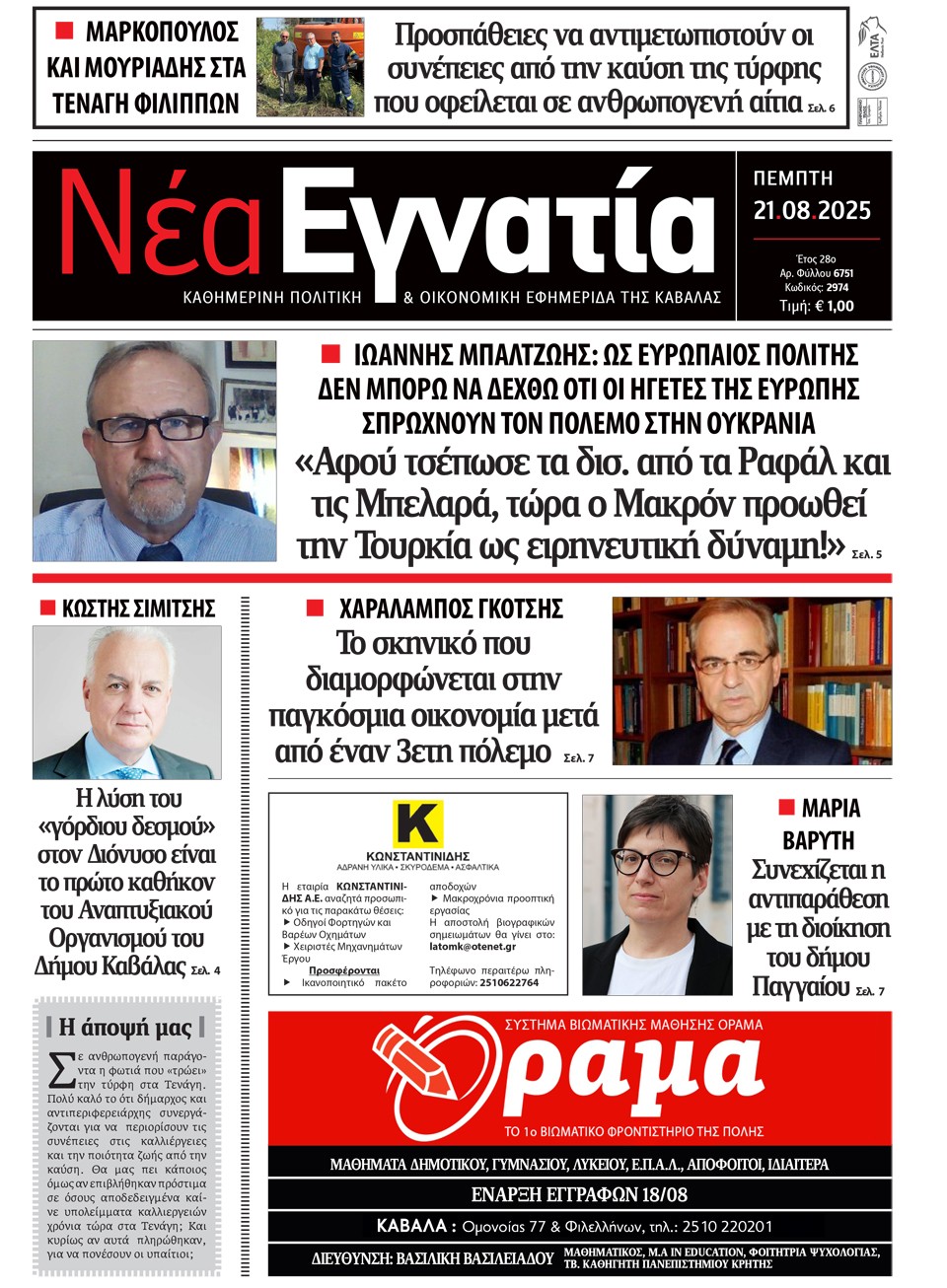 ΝΕΑ ΕΓΝΑΤΙΑ - 21 Αυγούστου 2025