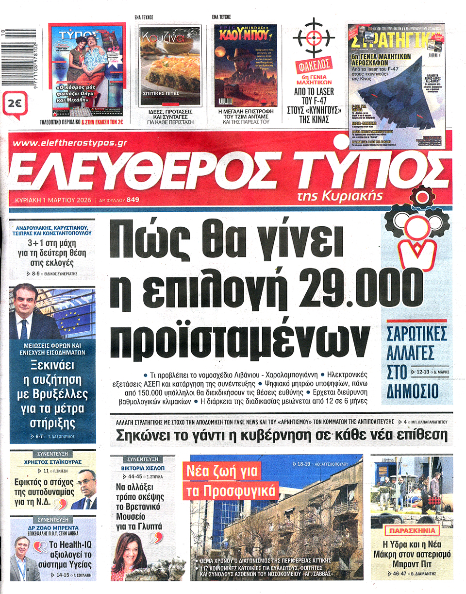 ΤΥΠΟΣ ΤΗΣ ΚΥΡΙΑΚΗΣ - 01 Μαρτίου 2026