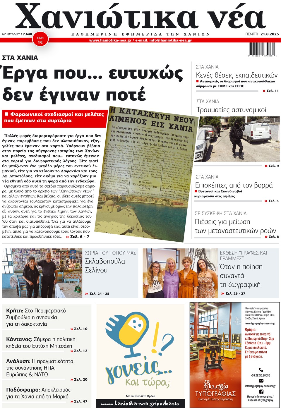 ΧΑΝΙΩΤΙΚΑ ΝΕΑ - 21 Αυγούστου 2025