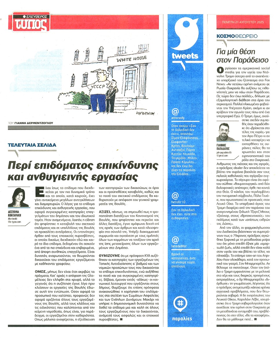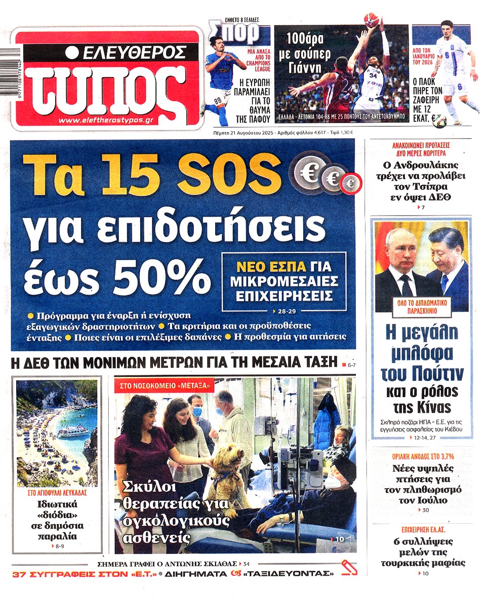 ΕΛΕΥΘΕΡΟΣ ΤΥΠΟΣ - 21 Αυγούστου 2025