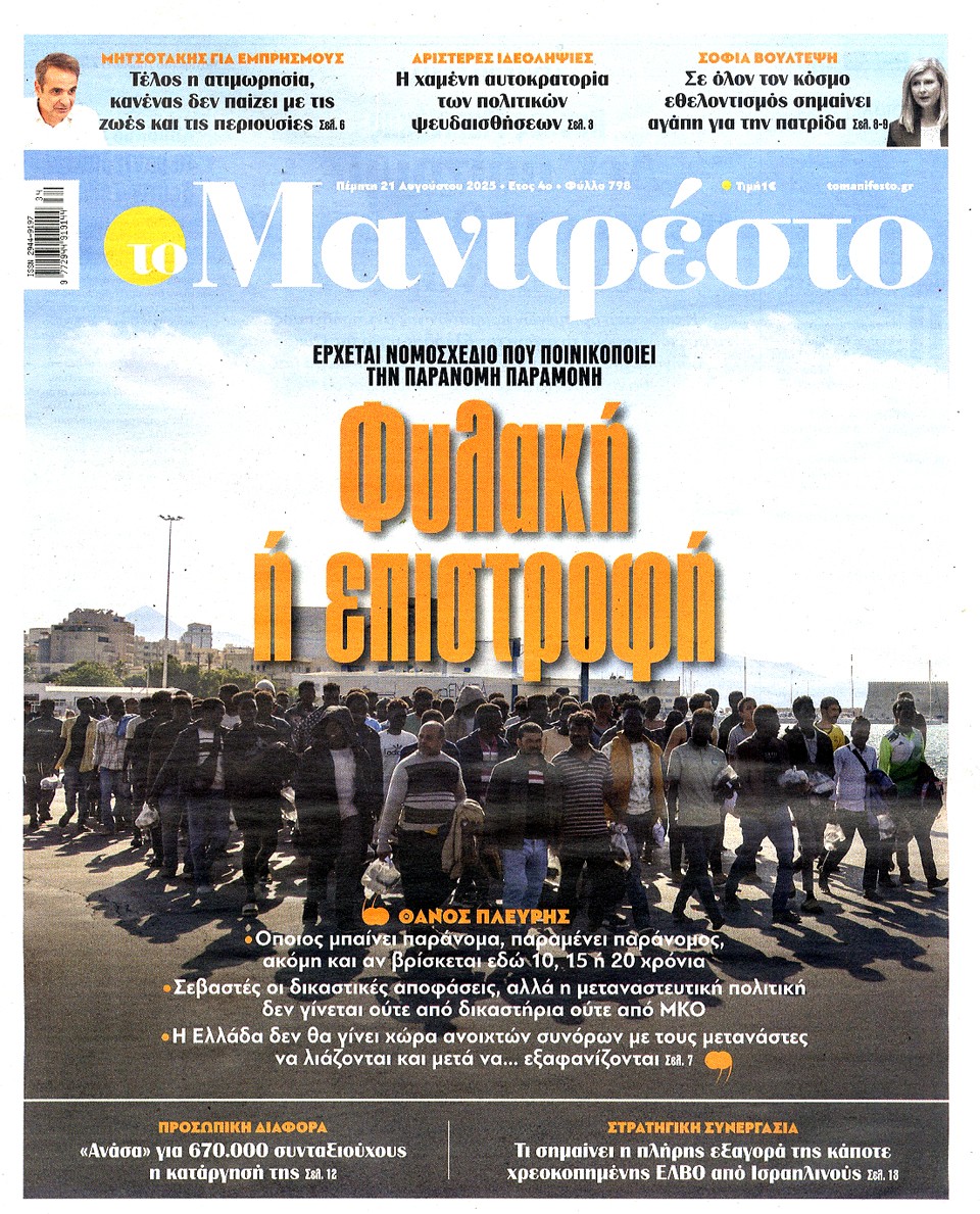 ΤΟ ΜΑΝΙΦΕΣΤΟ - 21 Αυγούστου 2025