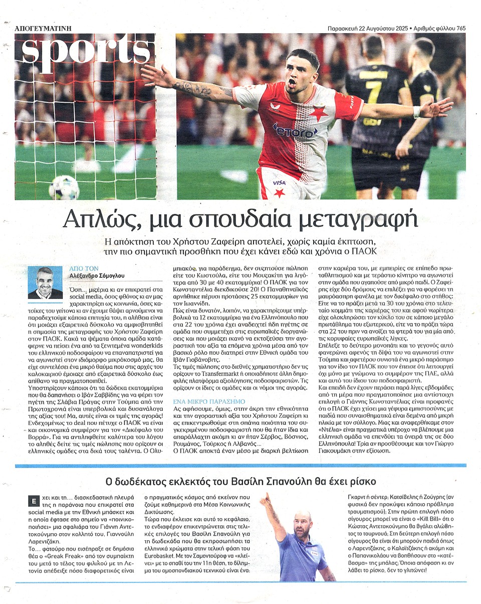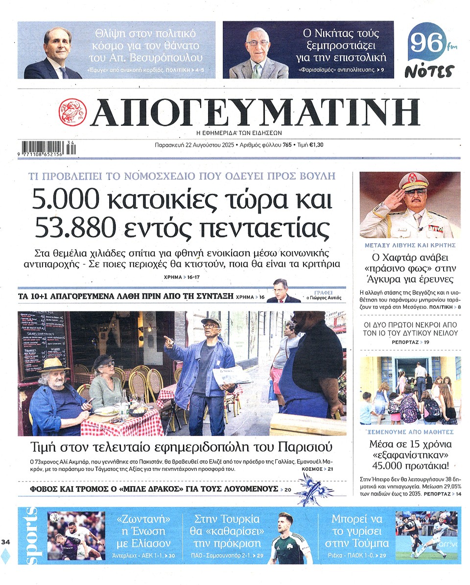 ΑΠΟΓΕΥΜΑΤΙΝΗ - 22 Αυγούστου 2025