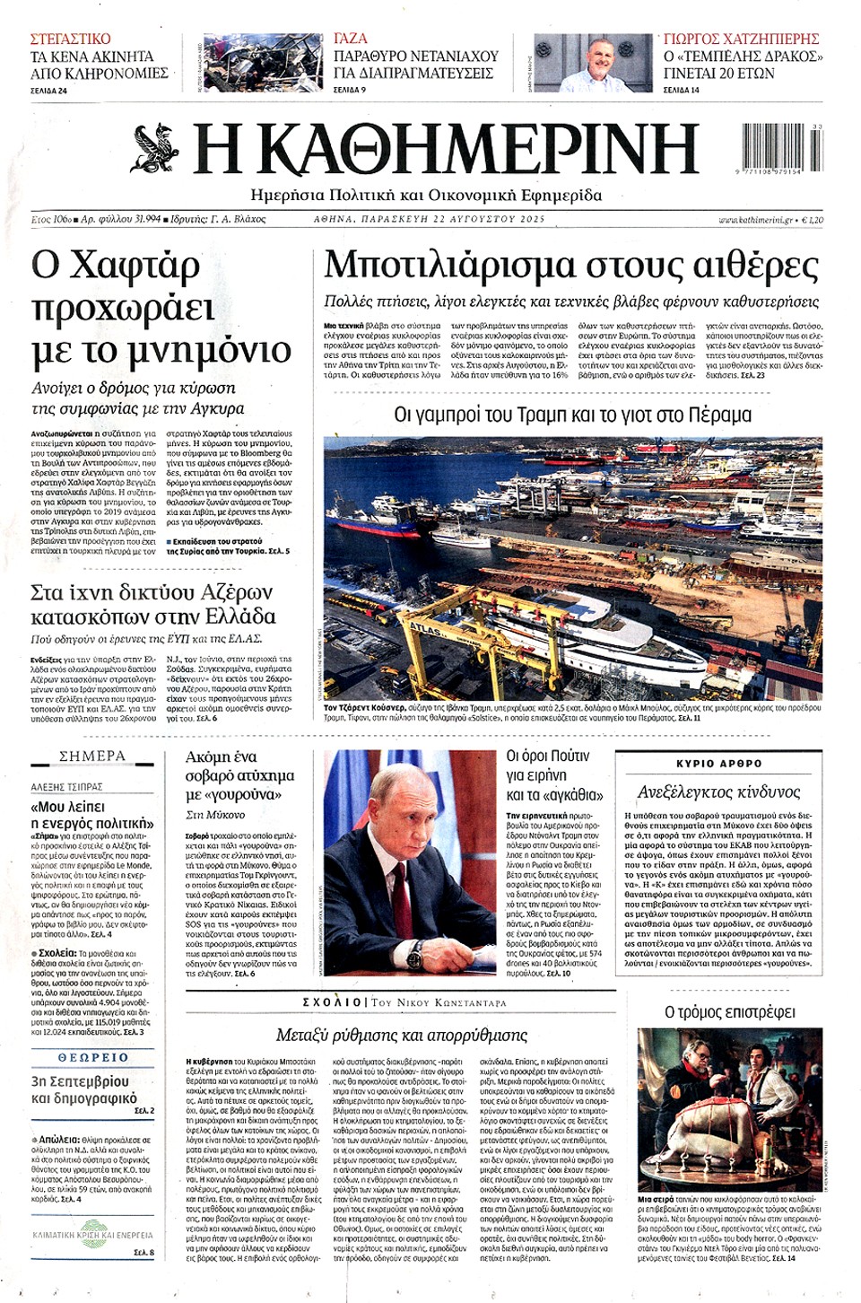 ΚΑΘΗΜΕΡΙΝΗ - 22 Αυγούστου 2025