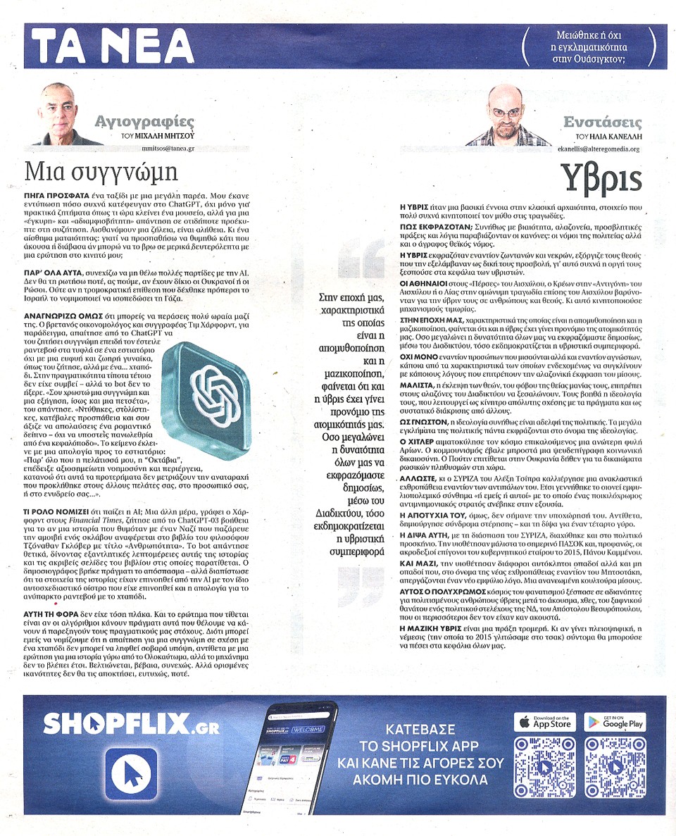 ΤΑ ΝΕΑ - 22 Αυγούστου 2025