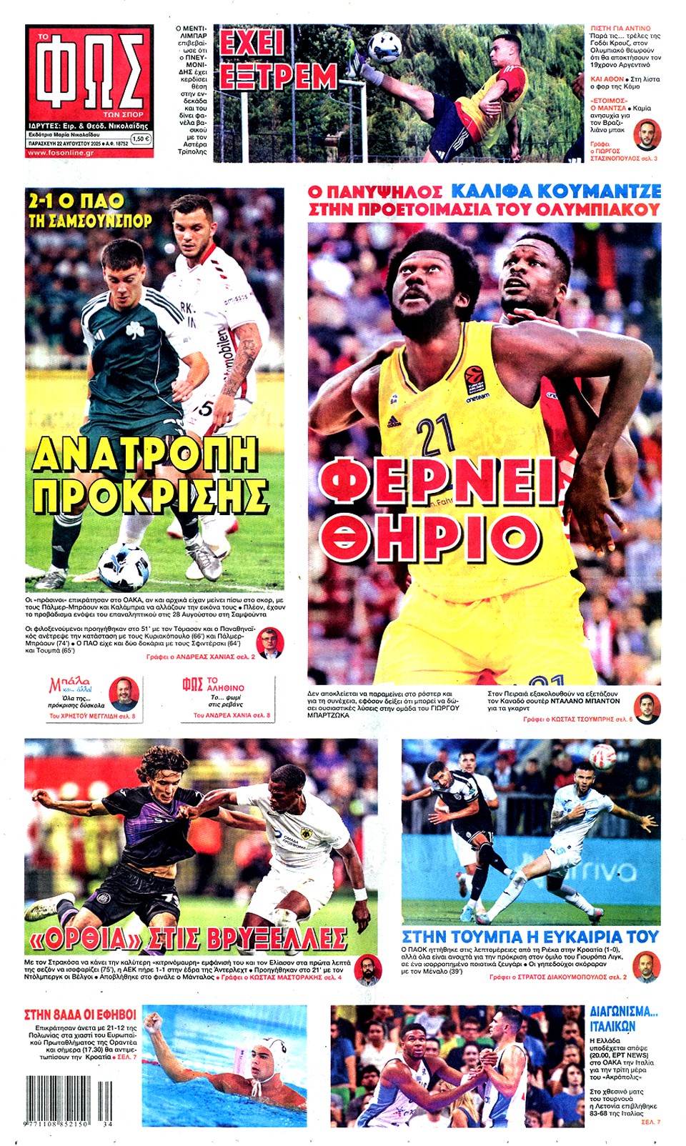 ΦΩΣ ΤΩΝ ΣΠΟΡ - 22 Αυγούστου 2025